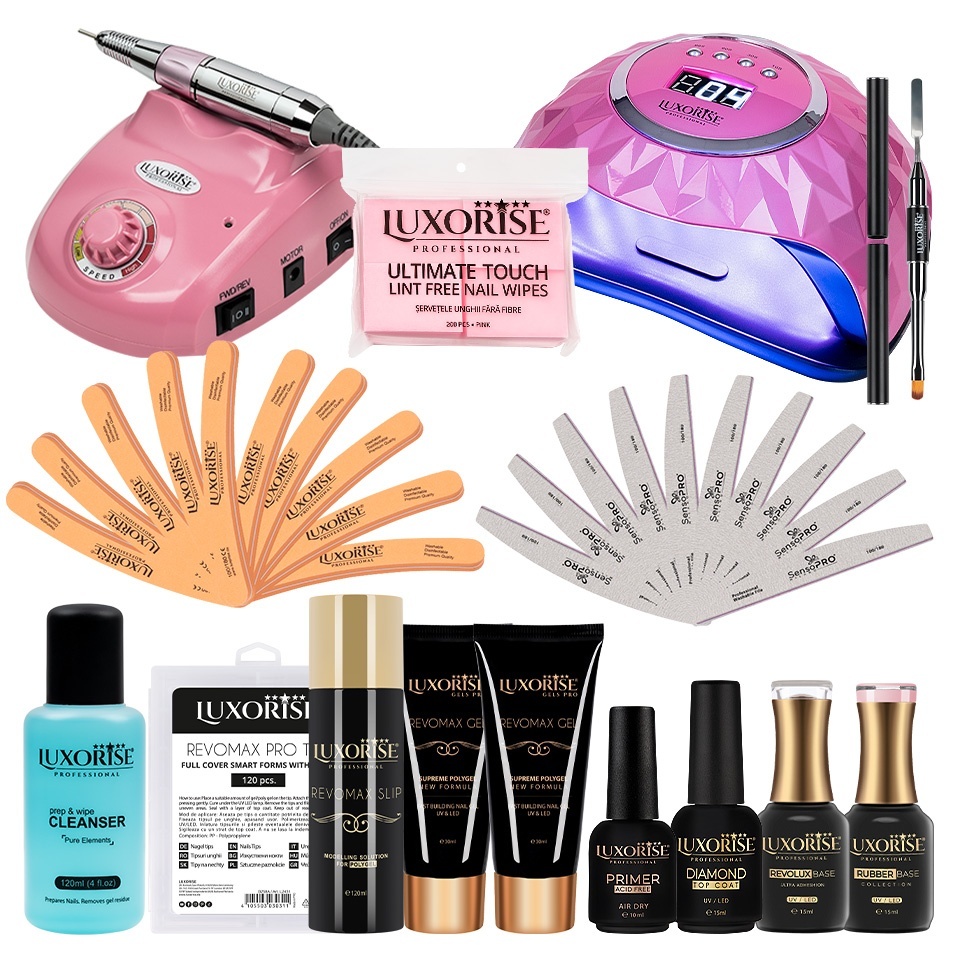 Kit Unghii Gel LUXORISE Exclusive Elite + Freza & Lampa UV / LED