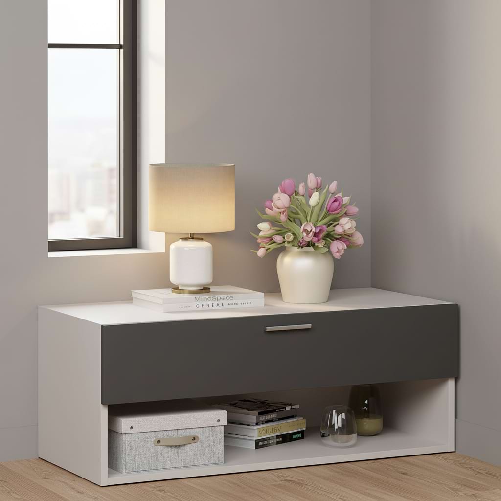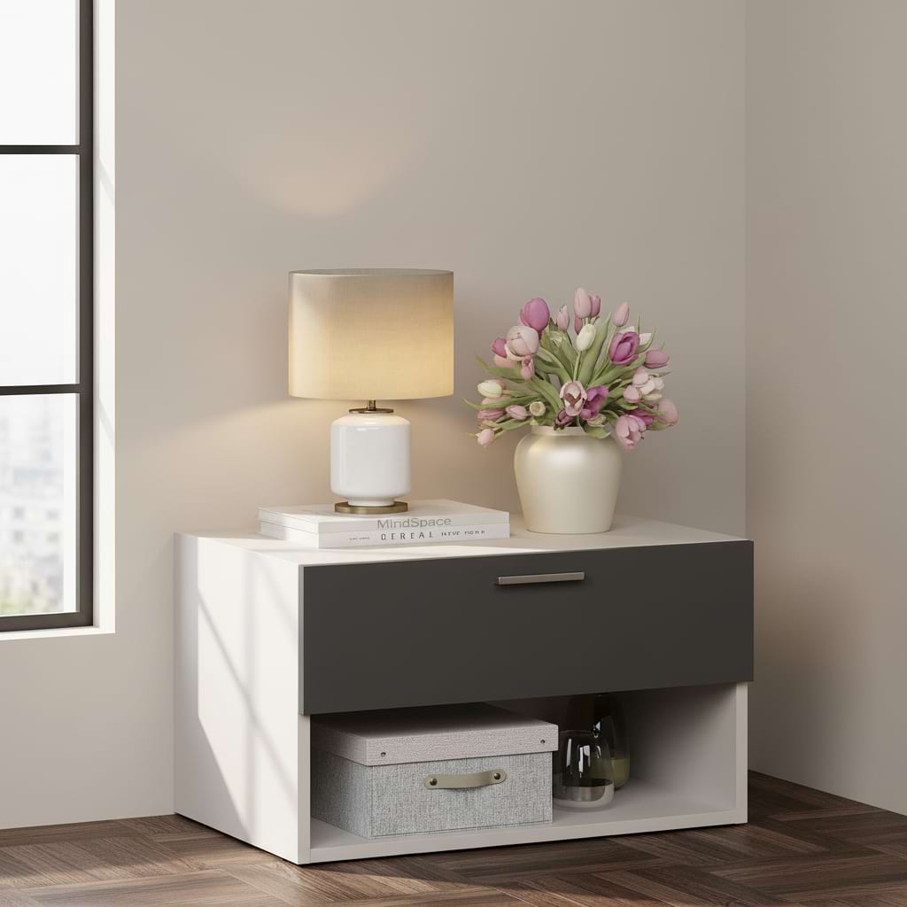 Noptiera ARONA 90, 1 sertar, Alb Portelan, Antracit