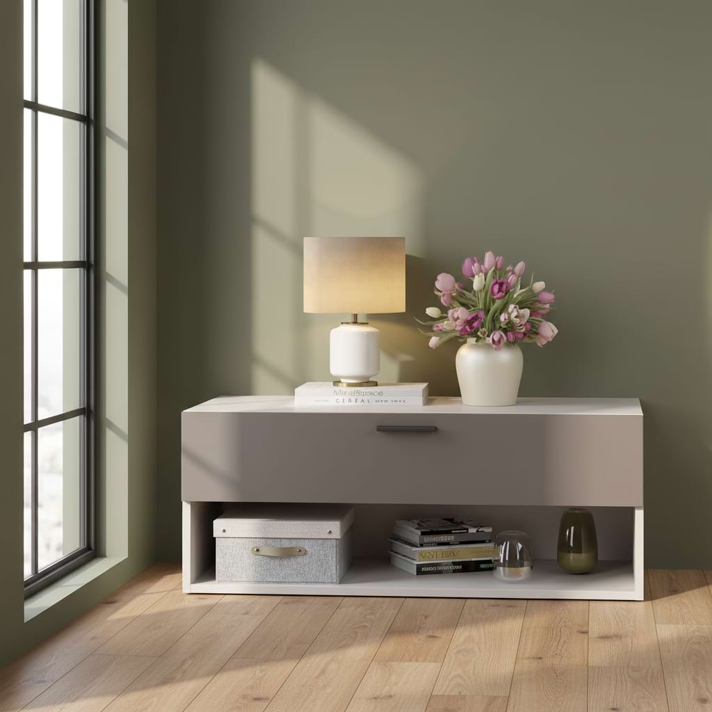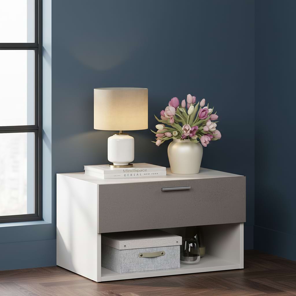 Noptiera ARONA 90, 1 sertar, Alb Portelan, Gri Piatra