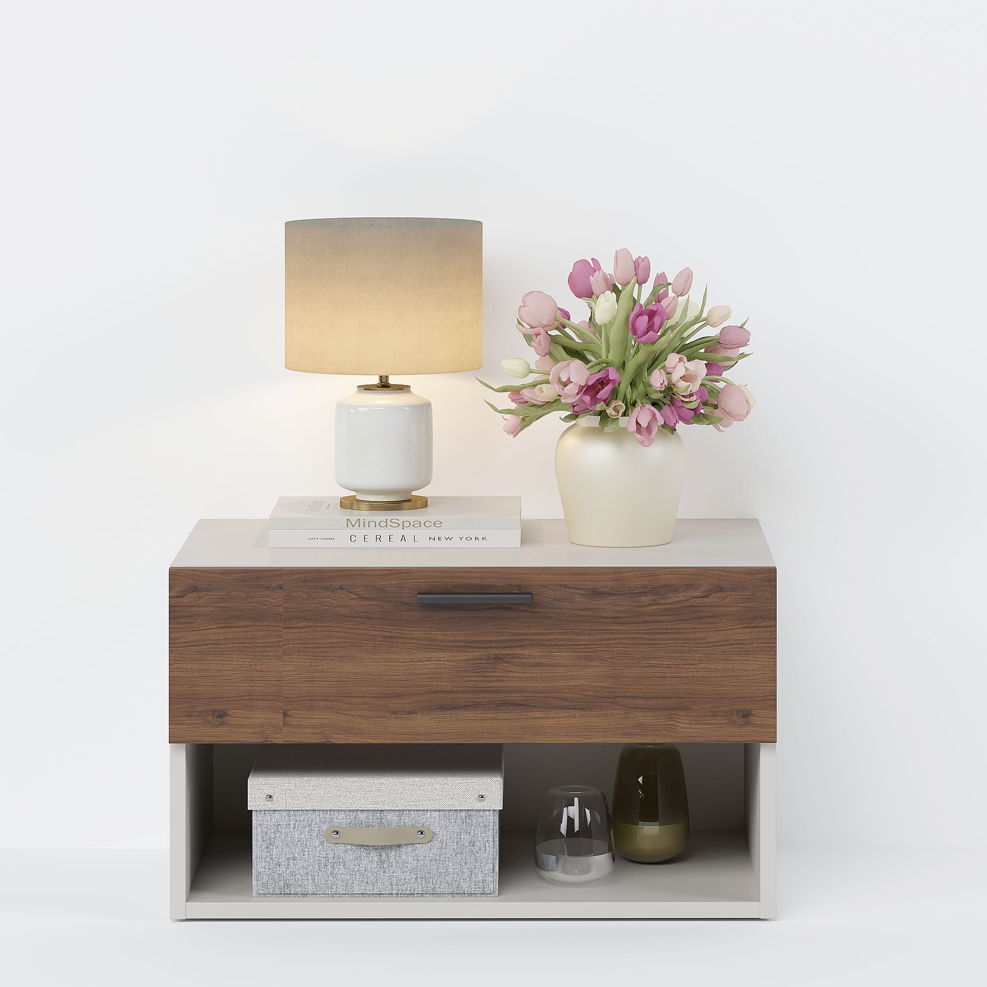 Noptiera ARONA 90, 1 sertar, Alb Portelan, Nuc Warmia