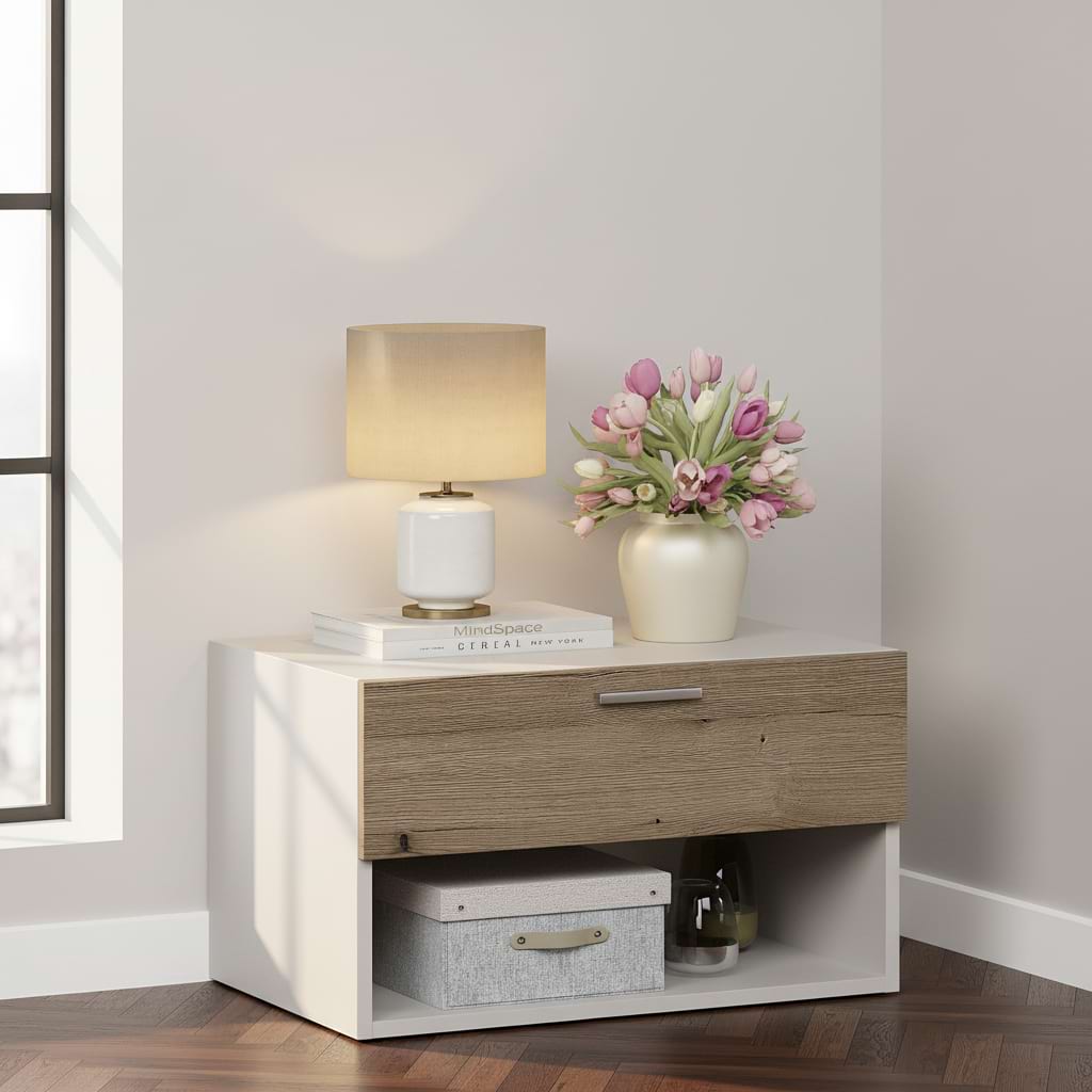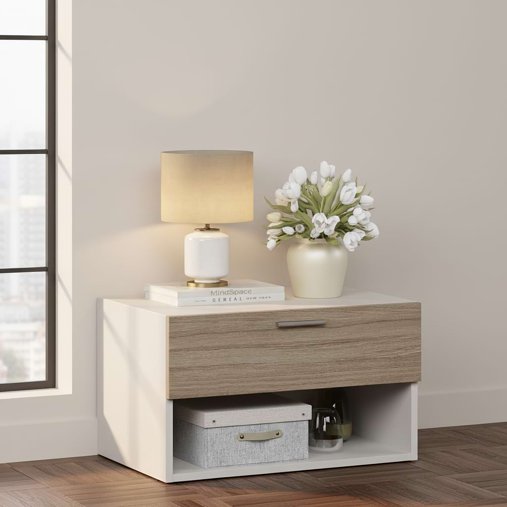 Noptiera ARONA 60, 1 sertar, Alb Portelan, Stejar