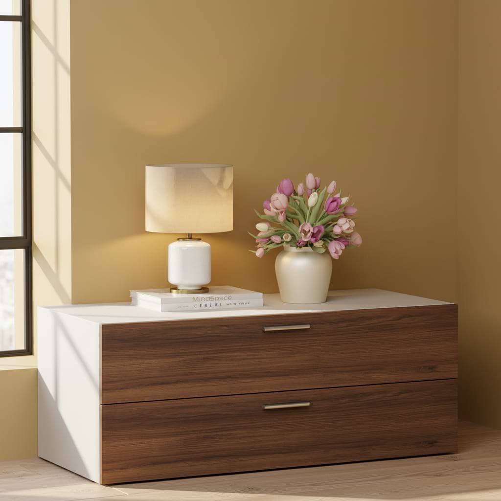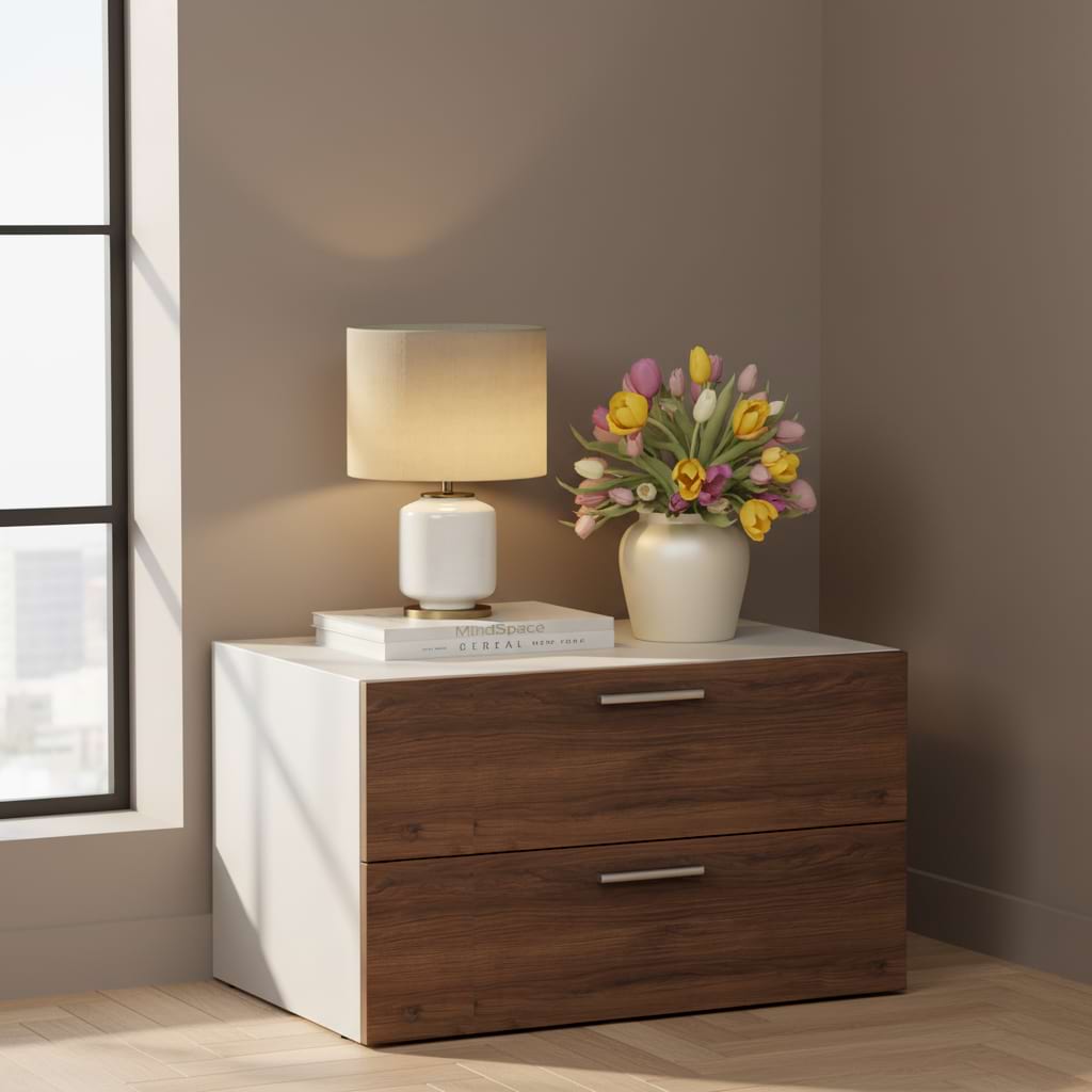 Noptiera ARONA 90, 2 sertare, Alb Portelan, Nuc Warmia