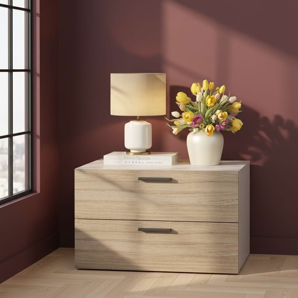 Noptiera ARONA 60, 2 sertare, Alb Portelan, Stejar