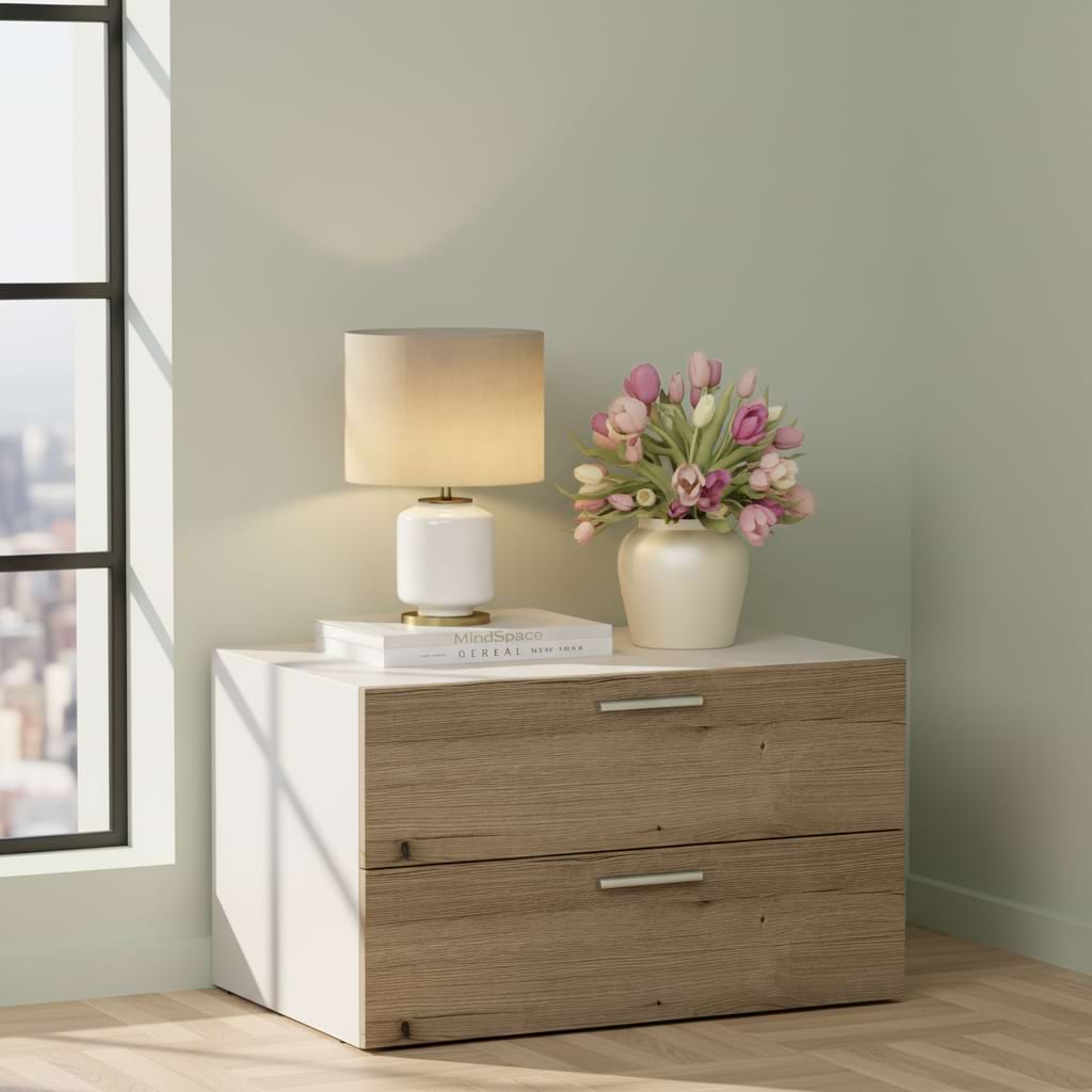 Noptiera ARONA 60, 2 sertare, Alb Portelan, Oak