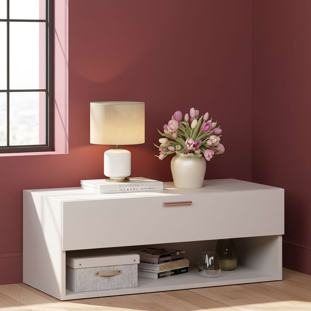 Noptiera ARONA 90, 1 sertar, Alb Portelan