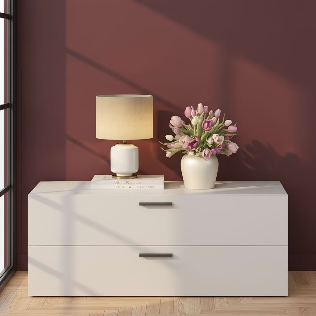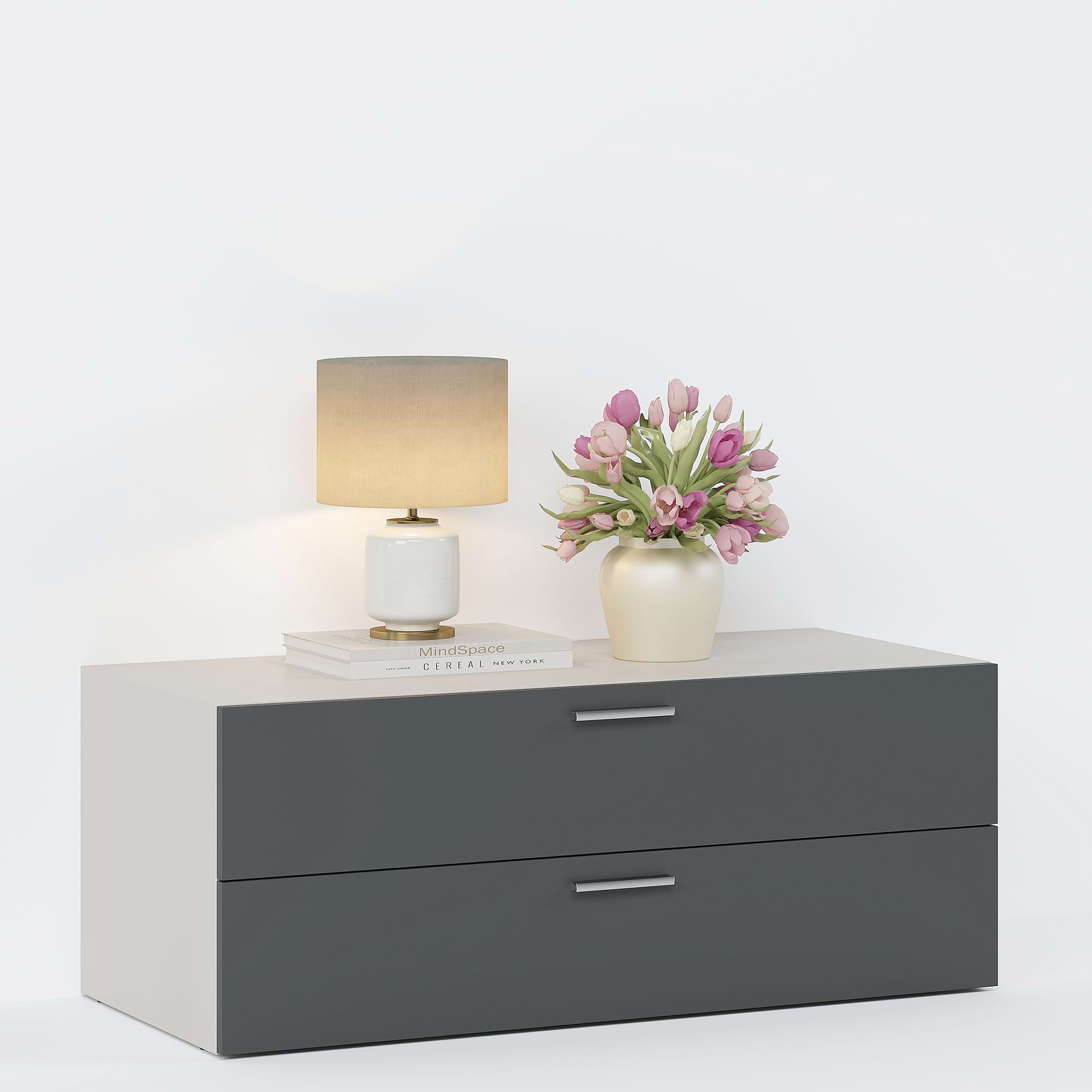 Noptiera ARONA 90, 2 sertare, Alb Portelan, Antracit