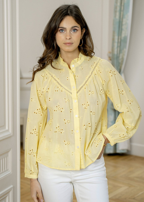 Camasa galbena din bumbac cu perforatii englezesti ASD97035 M9