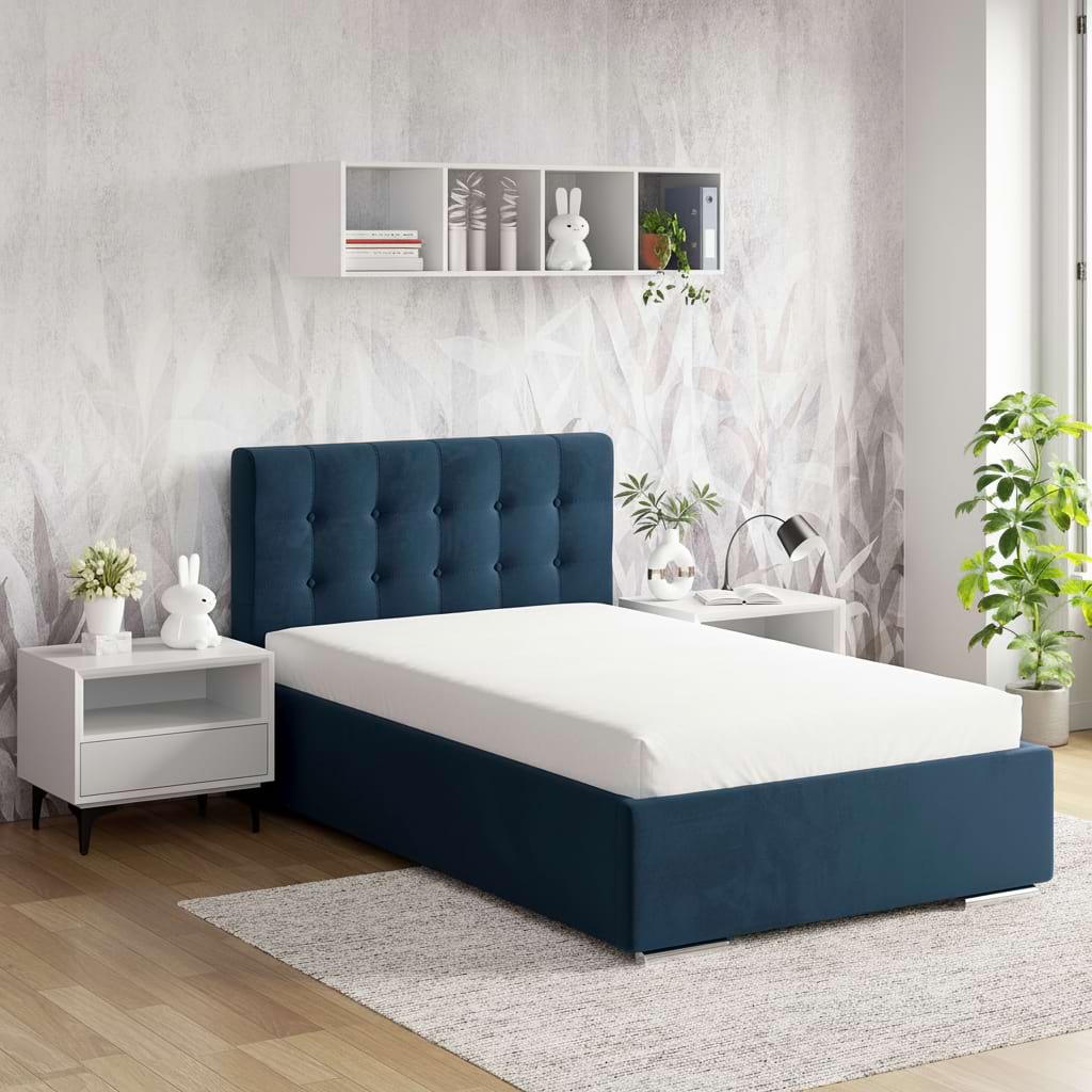 Pat copii de colt PRIMAVERA cu saltea inclusa, catifea Albastra