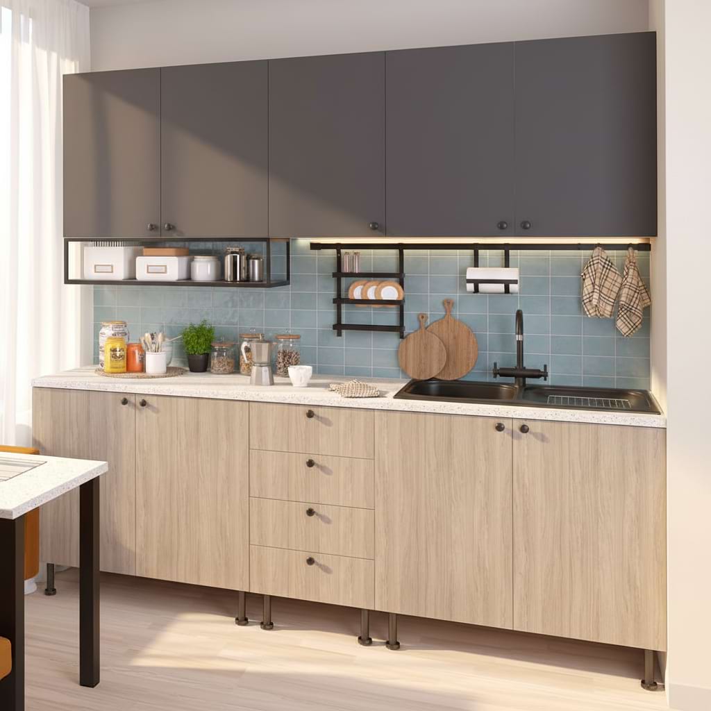 Mobila bucatarie DOMINO A225, Oak, Antracit