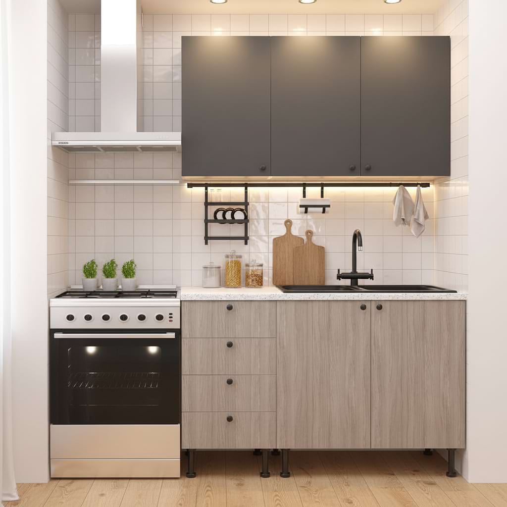 Mobila bucatarie DOMINO A150, Oak, Antracit