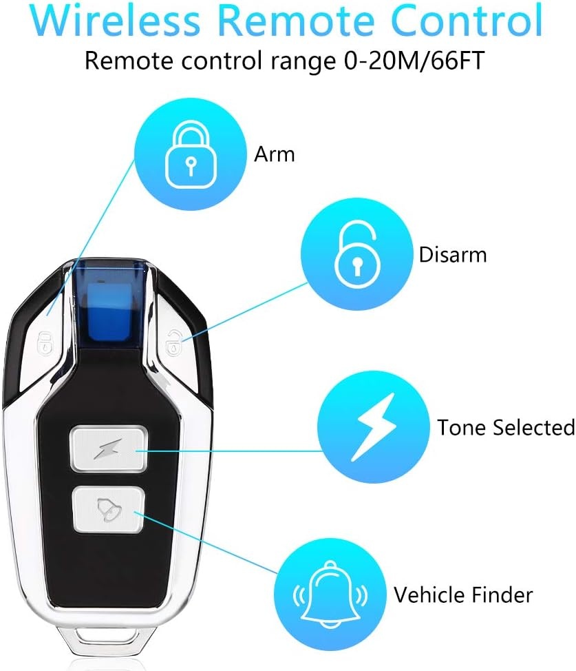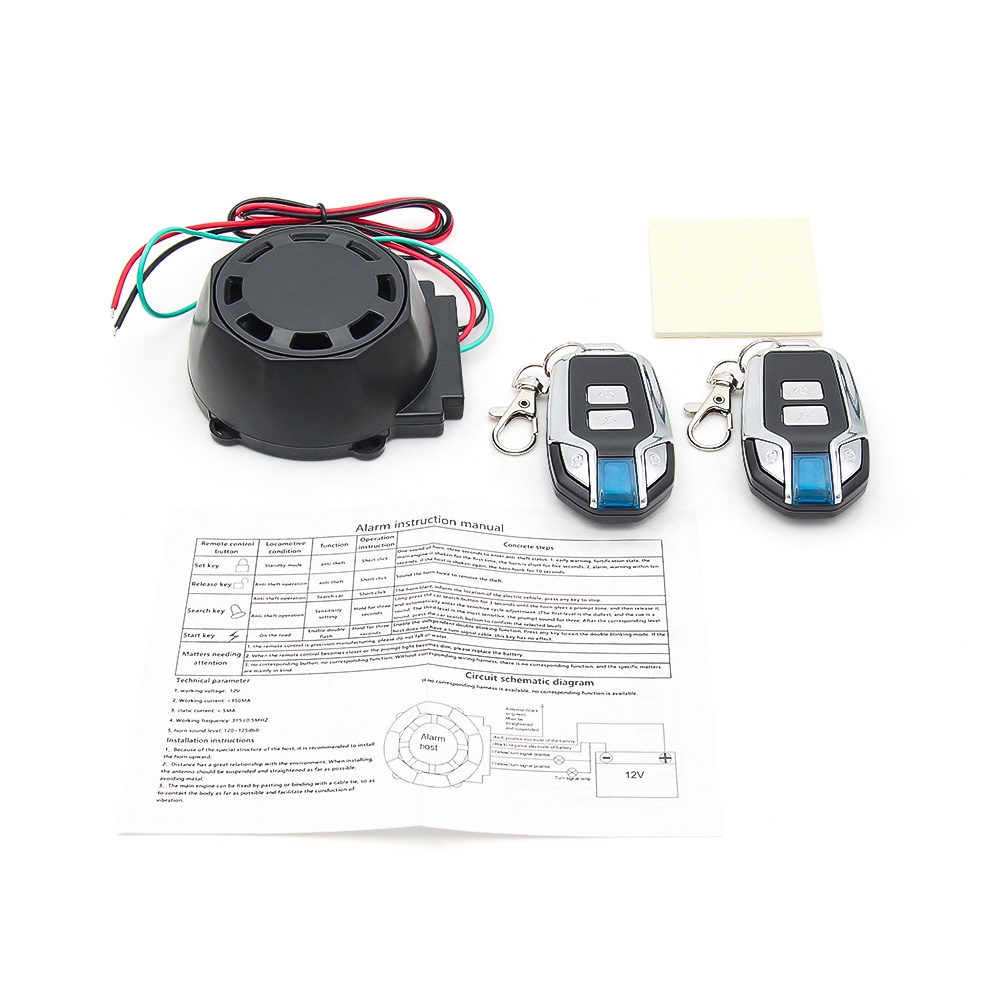 Alarma antiefractie pentru bicicleta / trotineta electrica, telecomanda wireless, reincarcabila USB-C, IP55, sensibilitate reglabila (7 nivele) Sistem de alarma compact, cu sirena puternica si telecomanda wireless, conceput pentru protectia bicicletelor, trotinetelor electrice si altor vehicule usoare. Se monteaza usor (sticker dublu adeziv sau coliere) si ofera armare/dezarmare rapida, functie de cautare vehicul si reglaj fin al sensibilitatii la vibratii. Beneficii cheie ? Sirena puternica 120–125 dB (nivel sonor ridicat, tip „horn”) ?️ Mod antiefractie cu avertizare + alarma la vibratii/miscare ?️ 7 nivele de sensibilitate (de la cel mai redus la cel mai sensibil) ? 6 sunete de alarma (selectabile din telecomanda) ? Telecomanda wireless cu functie Vehicle Finder ? Protectie IP55 (rezistenta la ploaie / utilizare in exterior) ? Acumulator reincarcabil 700mAh , incarcare USB-C Timp de lucru: 1–3 luni Standby: pana la 6 luni ? Montaj rapid: sticker dublu adeziv / coliere (cable tie) Functii telecomanda: 1) Armare (Set / Lock) – apasare scurta Se aude 1 semnal , dupa aprox. 3 secunde intra in mod antiefractie. La prima miscare/vibratie: avertizare (sunet scurt aprox. 5 secunde). Daca este zguduit din nou in scurt timp: porneste alarma (sunet aprox. 10 secunde). 2) Dezarmare (Release / Unlock) – apasare scurta Se aud 2 semnale , iar alarma se dezactiveaza. 3) Vehicle Finder / Cautare vehicul (Search) – apasare scurta Sirena emite sunet pentru localizare; apasati orice tasta pentru oprire. 4) Reglaj sensibilitate (Search) – apasare lunga ~3 secunde Intra in modul de reglaj: se parcurg nivelele (1 = cel mai redus, 7 = cel mai sensibil). Confirmare nivel: apasati din nou butonul de cautare (conform manualului). 5) Functie semnalizare „double flash” (Start / fulger) – apasare lunga ~3 secunde Activeaza modul de semnalizare (daca este conectata instalatia aferenta). Daca nu exista cablaj pentru semnalizare, functia nu are efect. Instalare: ? Fixare: cu sticker dublu adeziv sau coliere . ? Antena (neagra sau verde): se recomanda sa fie intinsa si suspendata , cat mai departe de metal, pentru semnal mai bun. ? Pozitionare sirena: orientata cat mai eficient (recomandat pentru propagare buna a sunetului). Parametri tehnici (din manual) Tensiune de lucru: 12V Curent de lucru: < 150 mA Curent in standby: < 5 mA Frecventa: 315 ± 0.5 MHz Nivel sonor: 120–125 dB Protectie la apa: IP55 Acumulator: 700 mAh , incarcare USB-C Distanta telecomanda ? Raza de control wireless: pana la 20 m (66 ft) / in unele materiale apare pana la 50 m (164 ft) (in functie de obstacole si mediul de utilizare). Dimensiune telecomanda (din imagine) aprox. 6.5 cm inaltime x 3.5 cm latime x 1.5 cm grosime Continut pachet (din imagini) ✅ 1 x Unitate alarma / sirena ✅ 2 x Telecomenzi wireless ✅ 1 x Sticker dublu adeziv ✅ 1 x Manual de utilizare