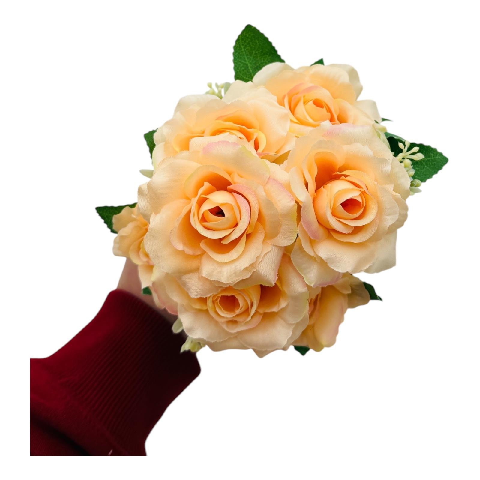 Buchetul artificial deosebit cu 7 trandafiri și crenguțe de eucalipt cu boboci este o combinație elegantă și armonioasă, perfectă pentru decoruri sofisticate și aranjamente florale rafinate. Fiecare trandafir este realizat cu o atenție deosebită la detalii, reproducând fidel aspectul și textura florilor naturale, în timp ce crenguțele de eucalipt cu boboci adaugă un element de prospețime și naturalețe. Cu o lungime de 30 cm și un design compact pe un singur fir, acest buchet este ideal pentru diverse utilizări: de la decorarea spațiilor interioare și comerciale până la completarea aranjamentelor florale pentru evenimente speciale, cum ar fi nunți sau recepții. Verdele delicat al eucaliptului contrastează plăcut cu trandafirii, creând o compoziție echilibrată și plină de eleganță. Disponibil en-gros, buchetul reprezintă o soluție practică și estetică pentru cei care doresc să creeze decoruri spectaculoase, fără grija întreținerii florilor naturale. Este alegerea ideală pentru a aduce un aer de prospețime și rafinament oricărui spațiu sau evenime nt.