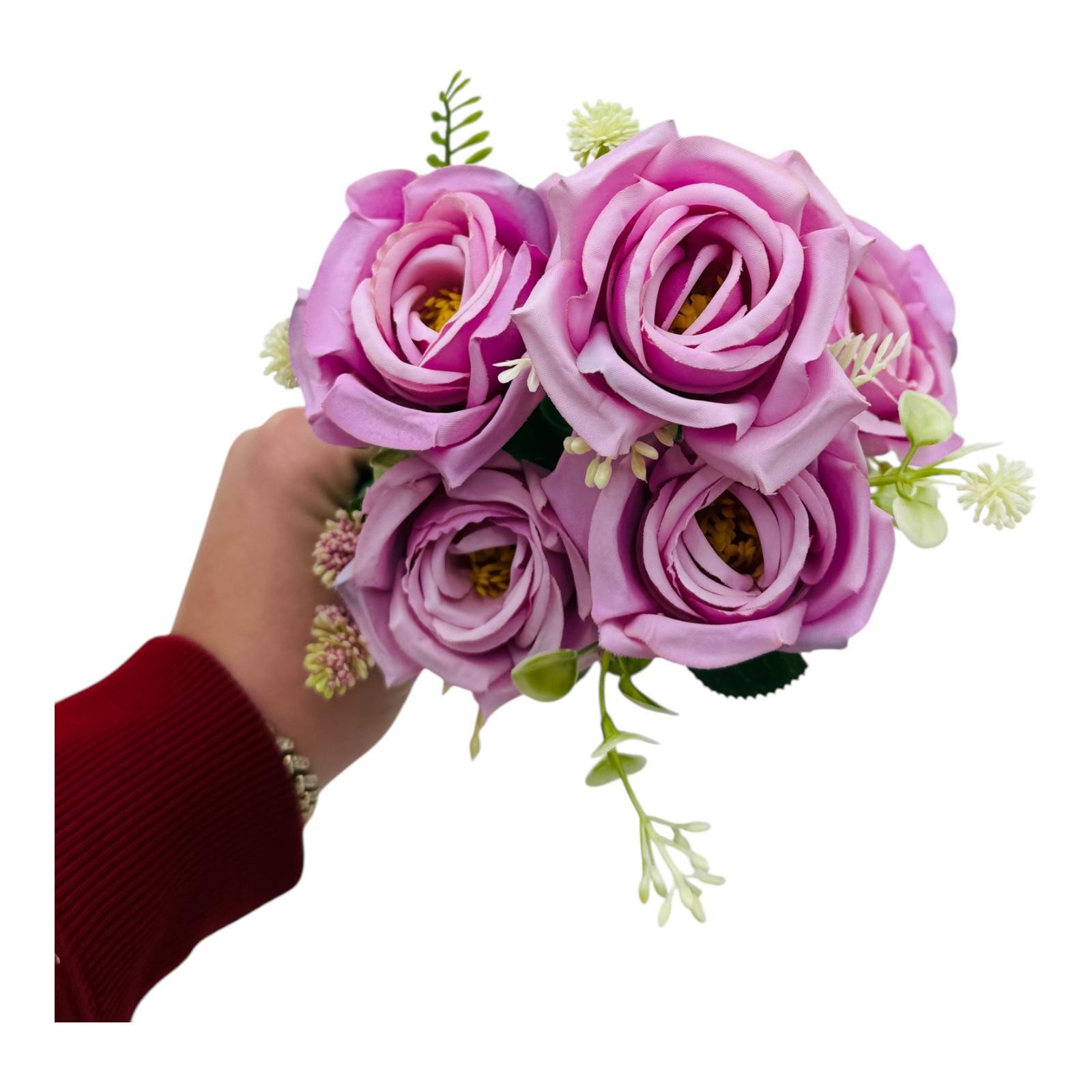 Buchetul artificial elegant cu 5 trandafiri și boboci de flori diverse este o alegere ideală pentru decoruri sofisticate și aranjamente rafinate. Fiecare trandafir este realizat cu detalii fine, imitând textura și culorile naturale ale florilor proaspete, iar combinația cu bobocii de flori diverse adaugă un aspect dinamic și plin de viață. Cu o înălțime de 30 cm, acest buchet compact și armonios poate fi utilizat în diverse decoruri interioare, de la spații rezidențiale la evenimente speciale, precum nunți, aniversări sau recepții. Bobocii de flori diverse completează designul, aducând un plus de diversitate și prospețime compoziției. Disponibil en-gros, acest buchet este soluția perfectă pentru cei care doresc să adauge un strop de eleganță și frumusețe spațiului lor, fără a se preocupa de întreținerea florilor naturale. Ideal pentru aranjamente florale, vitrine comerciale sau decoruri personalizate, acest buchet artificial oferă o combinație echilibrată între estetică și durabilitate.