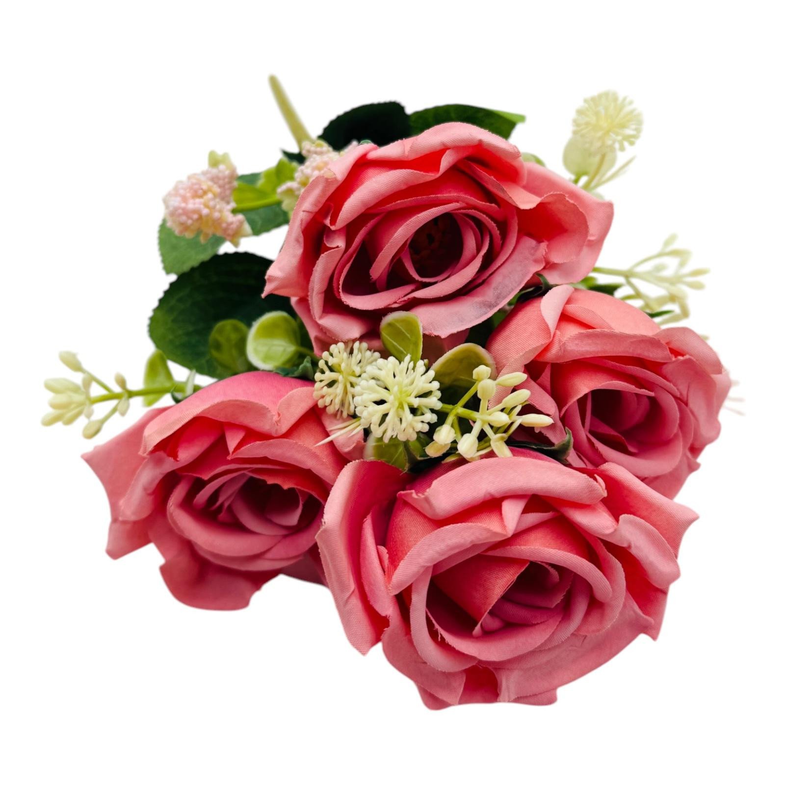 Buchetul artificial elegant cu 5 trandafiri și boboci de flori diverse este o alegere ideală pentru decoruri sofisticate și aranjamente rafinate. Fiecare trandafir este realizat cu detalii fine, imitând textura și culorile naturale ale florilor proaspete, iar combinația cu bobocii de flori diverse adaugă un aspect dinamic și plin de viață. Cu o înălțime de 30 cm, acest buchet compact și armonios poate fi utilizat în diverse decoruri interioare, de la spații rezidențiale la evenimente speciale, precum nunți, aniversări sau recepții. Bobocii de flori diverse completează designul, aducând un plus de diversitate și prospețime compoziției. Disponibil en-gros, acest buchet este soluția perfectă pentru cei care doresc să adauge un strop de eleganță și frumusețe spațiului lor, fără a se preocupa de întreținerea florilor naturale. Ideal pentru aranjamente florale, vitrine comerciale sau decoruri personalizate, acest buchet artificial oferă o combinație echilibrată între estetică și durabilitate.