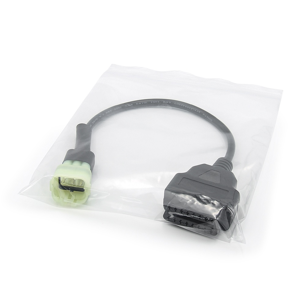 Adaptor cablu KTM 6-pin diagnostic (femela) → OBD-II 16-pin (femela), compatibilitate modele KTM cu mufa verde Acest cablu-adaptor converteste mufa OEM de 6 pini de pe motocicletele KTM cu ECU Bosch pe conectorul standard OBD-II de 16 pini, permitand utilizarea oricarui tester OBD-II (cu software-ul TuneECU) pentru diagnoza si reglaje. Constructie rezistenta, cu pini nichelati si izolare termoretractabila, asigura o conexiune ferma si durabila chiar si in conditii de vibratii si temperaturi ridicate. Caracteristici principale: Conector KTM OEM 6-pin femela (verde) → OBD-II 16-pin femela Materiale durabile: pini nichelati, cablu AWG 18, manson termoretractabil Lungime totala: 30 cm Plug-and-play: fara electronica interna, doar cablu adaptor Compatibilitate exclusiva cu modele KTM ce au conector Bosch 6-pin Avantaje: Permite diagnoza avansata si ajustari ECU folosind TuneECU si orice interfata OBD-II Economiseste costul unui adaptor KTM original Ideal pentru service-uri moto si pasionati DIY din Romania si Europa Modele KTM compatibile (mufa verde 6 pini): 990 Super Duke (2004–2013) 950/990 Adventure (2003–2013) 1190 Adventure / 1290 Super Adventure (primele generatii) 1050/1090 Adventure (modele pre-2016) Duke 125/200 (pre-2014) 690 Duke / Enduro (pana in 2018)