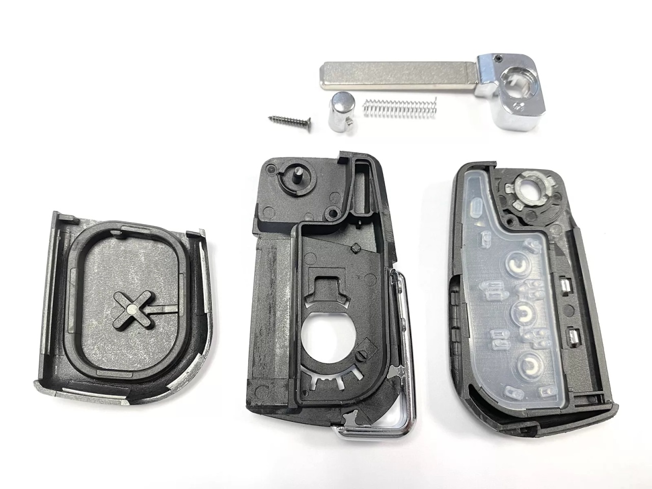 Carcasa de schimb tip briceag cu 3 butoane pentru cheie auto Toyota Prius. Este ideala pentru repararea unei carcase vechi sau a unui mecanism de briceag defect. Compatibila cu telecomenzile Toyota ce utilizeaza lama tip VA2 si circuit intern detasabil. ✔️ Compatibilitate: Toyota Prius (confirmat pentru generatii cu telecomanda 3 butoane si lama VA2) Se potriveste doar daca vechea carcasa are aceeasi forma si configuratie Compatibila cu cip si placa electronica existente (care se transfera) ⚙️ Caracteristici produs: Carcasa aftermarket cu 3 butoane (lock / unlock / portbagaj) Tip briceag (flip key), mecanism rezistent Lama tip VA2 – neprelucrata Include butoane din cauciuc si suport pentru placa electronica Nu include cip sau electronica – acestea se transfera din cheia originala Material: ABS + metal ? Mod de instalare: Deschideti cheia veche Scoateti placa electronica si cipul Montati componentele in carcasa noua Taiati lama noua la un lacatus auto ✅ Nu necesita programare electronica ⚠️ Atentie: Verificati cu atentie forma carcasei si a butoanelor pentru compatibilitate Lama VA2 este inclusa, dar vine neprelucrata – se recomanda frezare profesionala Nu este compatibila cu modele care folosesc alt tip de lama sau alt layout de butoane ? Continut pachet: 1 x carcasa cheie tip briceag 3 butoane 1 x lama VA2 (neprelucrata) ✅ Avantaje: Reparatie accesibila si eficienta pentru cheia uzata Fabricat aftermarket – compatibil cu originalul Mecanism nou de pliere pentru lama Design modern si material rezistent ❗ Acesta este un produs aftermarket , destinat inlocuirii carcasei originale. Marca Toyota este folosita exclusiv pentru a indica compatibilitatea. Nu este un produs OEM.