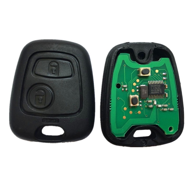 Ai nevoie de o cheie de rezerva? Nimic mai simplu, alege o cheie potrivita pentru modelul tau si mergi la un centru de chei auto pentru programarea acesteia. Carcasa cheie + lamela + placa electronica + cip. Poti muta cipul si lamela din vechea carcasa sau poti merge la un centru de copiere chei pentru programare si copiere lamela. Specificatii: 433Mhz, 4D67, VA2 Numar butoane: 2 Modele compatibile: Citroen C-Quatre Citroen C-Triomphe Citroen C2 Citroen C3 Citroen C4 Citroen C5 Citroen C6 Citroen C8 Citroen Xrasa Picasso Peugeot 307 Peugeot 407 Peugeot 1007 Peugeot 107 Peugeot 207 Peugeot 607 Inainte de finalizarea comenzii pentru acest articol, va recomandam sa analizati si sa comparati in detaliu cheia originala, lacasul electronic, suportul de baterie, frecventa telecomenzii, codul placii electronice, tipul de transponder, tipul de lama etc... Cod Referinta: peugeot-rk-02