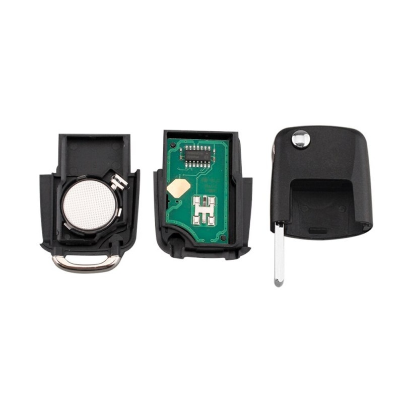 Ai nevoie de o cheie de rezerva? Nimic mai simplu, alege o cheie potrivita pentru modelul tau si mergi la un centru de chei auto pentru programarea acesteia. Carcasa cheie + lamela + placa electronica + cip. Poti muta cipul si lamela din vechea carcasa sau poti merge la un centru de copiere chei pentru programare si copiere lamela. Specificatii: 433Mhz, 1J0 959 753, ID48 Numar butoane: 2 Modele compatibile: 2002-2004 VOLKSWAGEN New Beetle 2002-2005 VOLKSWAGEN Bora 2002-2005 VOLKSWAGEN Golf 2001-2005 VOLKSWAGEN Passat 2002-2008 VOLKSWAGEN Polo 2003-2010 VOLKSWAGEN Transporter T5 Inainte de finalizarea comenzii pentru acest articol, va recomandam sa analizati si sa comparati in detaliu cheia originala, lacasul electronic, suportul de baterie, frecventa telecomenzii, codul placii electronice, tipul de transponder, tipul de lama etc... Cod Referinta: VW-RK-05