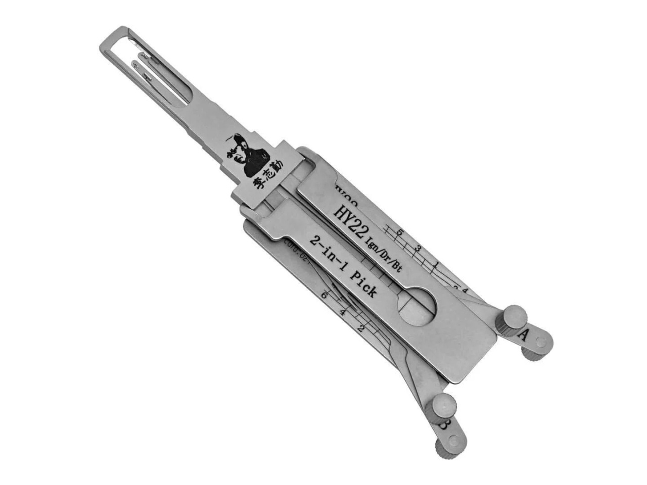Decodorul din imagini este Original Lishi HY22 2-in-1 Pick & Decoder , unealta profesionala pentru deschiderea si decodarea nedistructiva a incuietorilor auto destinate marcilor Hyundai si Kia . Este proiectat pentru profilul de lama HY22 / KIA7 / T14 (#77 blade, high-security laser) si poate fi utilizat atat pentru contact (ignition) , cat si pentru usi si portbagaj , in functie de configuratia masinii. Produsul este destinat exclusiv uzului profesional, fiind folosit de lacatusi auto si ateliere specializate pentru interventii rapide, fara deteriorarea incuietorii. Caracteristici principale Produs original Lishi – fabricat conform standardelor oficiale, cu marcaje laser clare si scala de citire precis calibrata Unealta 2-in-1 (Pick + Decoder) – permite atat manipularea pinilor pentru deschidere, cat si citirea directa a codului mecanic al cheii Compatibil profil HY22 / KIA7 / T14 – incuietori high-security, 2 track, 6 taieri, lama tip #77 Constructie din otel inoxidabil de inalta calitate , rezistent la uzura Marcaje Side A / Side B pentru decodare corecta Ideal pentru copiere chei dupa citire mecanica , fara demontarea cilindrului Compatibilitate auto (compatibilitatea depinde de tipul de lama folosit de vehicul; listele sunt orientative) HYUNDAI Azera – 2005–2011, 2013–2015 Equus – 2011–2013 Genesis / Genesis Sedan – aprox. 2009–2014 Grandeur – 2006 → i10 – 2008 → i20 – 2008 → i30 – 2008 → Elantra / Elantra Touring – aproximativ 2011–2013 Sonata – 2010–2014 Alte modele echipate cu lama HY22, in functie de piata si nivel de echipare: Verna, ix35, ix45, Grandeur KIA Amanti – 2004–2010 Borrego – 2009–2011 Cee’d – 2007 → Picanto – 2008–2011 Forte – 2011–2013 Optima / K5 – aproximativ 2010–2015 Rio – 2010–2013 Rondo – 2011 Sorento – 2010–2013 Alte modele compatibile cu profil HY22: Sportage, Sportage R si alte SUV-uri Kia echipate cu lama #77 Recomandari de utilizare Recomandat pentru lacatusi auto profesionisti si service-uri specializate Potrivit pentru interventii rapide in caz de chei pierdute sau blocate Permite citirea codului de cheie pentru realizarea unui duplicat , fara schimbarea incuietorii Nu este destinat utilizarii de catre persoane neautorizate