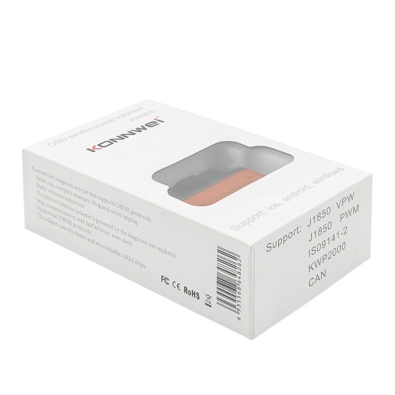 KONNWEI OBD2 Scanner KW901 ELM327 V1.5 Bluetooth Autoscanner PIC18f25k80 MINI ELM 327 OBDII KW901 ELM327 V1.5 (Bluetooth) Caracteristici: Dimensiuni mici, structura compacta. Se conecteaza si nu se deconecteaza niciodata Conexiune wireless stabila prin bluetooth 3.0. Fara fire sau baterii (adaptorul este alimentat de bateria de 12V pentru vehicule). 30 de minute fara comunicare, acesta va trece automat in modul de repaus. Consum foarte redus in modul de veghe, mai putin de 10MA. Suporta TOATE protocoalele OBDII, cele mai largi acoperiri. Adaptorul utilizeaza modul de comunicare rapida si cele mai fiabile cipuri PIC18F25K80, pana la 30PID/S. Buton adevarat ON-OFF, puteti apasa butonul pentru a opri diagnoza daca nu este utilizata. Lista de functii ELM327 V1.5 (Bluetooth): 1. Citirea codurilor de diagnosticare a problemelor, atat generice cat si specifice producatorului 2. Stergeti codurile de defectiune si opriti MIL (lumina Check Engine) 3. Afiseaza datele curente ale senzorilor, inclusiv: 4. RPM motor 5. Valoarea calculata a sarcinii 6. Temperatura lichidului de racire 7. Starea sistemului de combustibil 8. Viteza vehiculului 9. Reglarea combustibilului pe termen scurt 10. Fuel Trim pe termen lung 11. Presiunea in galeria de admisie 12. Avansarea distributiei 13. Temperatura aerului de admisie 14. Debitul de aer 15. Pozitia absoluta a clapetei de acceleratie 16. Tensiuni ale senzorului de oxigen/reglajele de combustibil pe termen scurt asociate 17. Starea sistemului de combustibil 18. Presiunea combustibilului Intrebari frecvente inainte de comenzi (Va rugam sa cititi cu amabilitate inainte) Q1: Care este versiunea ELM327? A1: Aceasta este versiunea reala V1.5 de inalta calitate, versiunea originala Microchip PIC18F25K80, frecventa de 4mhz a oscilatorului de cristal acolo, suporta comenzile ATAL si ATPPS, Suporta toate vehiculele OBD2. Q2: Care este diferenta dintre V1.5 si V2.1 ? si Cum pot sa o verific ? A2: Cel mai nou ELM327 al nostru este 100% V1.5, care suporta versiunea completa a protocoalelor (10 protocoale), in special protocoalele J1850 si J1939 pentru masinile japoneze si americane, alte elm327 doar 7 sau 9 protocoale. Q3: Acest adaptor este compatibil cu masinile diesel sau camioanele ? Functioneaza cu IOS? A3: ELM327 nu suporta vehiculele diesel sau camioanele mai vechi de anul 2003, iar acest ELM327 este versiunea bluetooth doar pentru telefoane mobile cu sistem android. Daca aveti nevoie de versiunea IOS, va rugam sa consultati KW902 wifi Q4: Cum stiu daca masina mea functioneaza sau nu cu ELM327 ? A4: Acest adaptor bluetooth ELM327 functioneaza pentru toate vehiculele conforme OBD-II. Q5: Ce functii pot face cu ELM327 ? A5: Dispozitivul este un mic adaptor care se conecteaza la conectorul OBD al vehiculului. Pe Bluetooth, se conecteaza la orice calculator, tableta sau smartphone( android), Cu procedurile de diagnosticare asociate . Facand aceste operatiuni simple, veti putea: * Cititi, stergeti si afisati descrierile codurilor problemelor - atat cele standard cat si cele ale producatorilor speciali. * Masurati consumul de combustibil. * Afisati in timp real performantele de functionare ale masinii, cum ar fi impulsul, viteza vehiculului, presiunea uleiului, temperatura lichidului de racire, sarcina motorului, presiunea in colectorul de admisie, pozitia clapetei de acceleratie, valorile senzorilor de oxigen, admisia de aer temperatura de admisie a aerului si multe altele. * Opriti MIL (semnalul MIL (Check Engine). * Descarcati datele pe suporturi externe intr-o varietate de formate pentru a le imprima ulterior. * Inregistrati diversi parametri, afisati grafice in timp real si multe altele. Q6: Care este functia butonului ON/OFF ? A6: Butonul albastru ON/OFF este pentru resetarea/trezirea dispozitivului, deoarece acest ELM327 nou proiectat este construit cu modul de auto-sleep, dupa 30 de minute fara comunicare, acesta va intra in modul sleep. Consumul in modul de veghe al scanerului nostru este de numai 10MA, astfel incat nu trebuie sa va faceti griji daca il lasati in masina peste noapte cu conectarea la priza. Continut: 1x Scanner Bluetooth KW901 1x Manual instructiuni