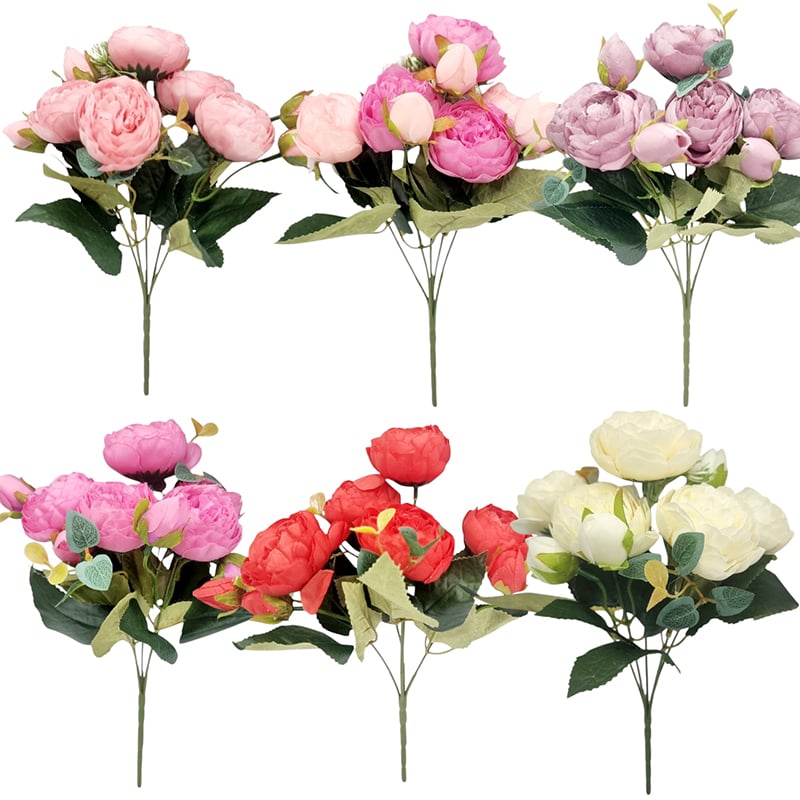 Flori artificiale Bujori 5 fire set engros 12/buchete culori mixte 30 cm lungime IN SET VIN URMATOARELE CULORI- 1 GALBENE,3 ALBE,1 CICLAM,1 MOV,3 ROSI,1 ROZ SI 1 TURCOAZ, 1 ROZ CU CICLAM