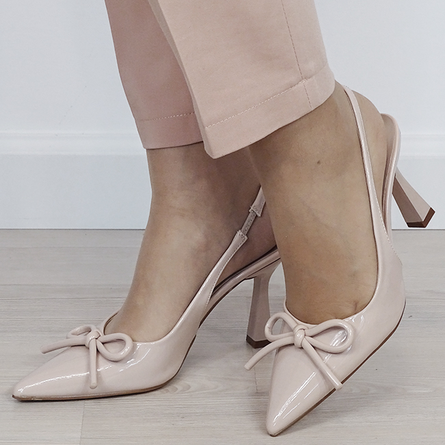 Pantofi nude de lac cu fundita BYJ9881 01
