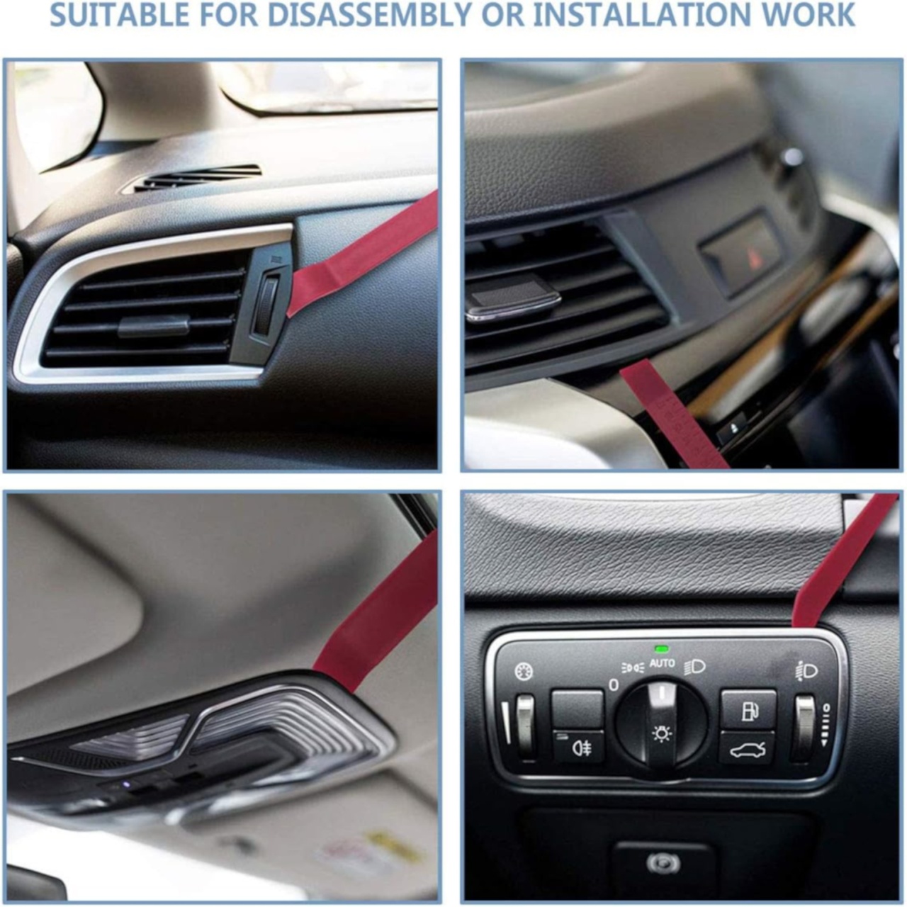 Kitul Techstar de 26 piese ofera tot ce ai nevoie pentru interventii controlate, curate si rapide la usi si elemente interioare. Continut principal: Tija segmentata din otel inox 170 cm cu maner cauciucat si cap in „L”; asamblare rapida cu cuplaje metalice. 2 perne pneumatice (air wedge) pentru creare de spatiu fin intre usa si montant fara a forta; supape cu eliberare controlata. 5 leviere de plastic pentru demontarea ornamentelor/clemelor fara urme. Unelte dedicate : extractoare pentru radio, carlige, tije T si distanteri pentru ghidare. Geanta rigida cu fermoar pentru transport si organizare. Avantaje cheie: Control si siguranta sporite : folosesti perna de aer pentru desfacere fina, apoi tija pentru actionarea butoanelor. Materiale durabile : tije din inox, manere antiderapante, piese de plastic cu margini rotunjite. Multi-scop : asistenta rutiera, service-uri, detailing – inclusiv demontare panouri, clapete aerisire, consola, rame manere, unitati audio. Recomandari de utilizare responsabila: Foloseste kitul doar pe vehiculele tale sau cu permisiune explicita. Evita suprapresurizarea pernelor. Protejeaza vopseaua si garniturile cu lavete. Nu forta mecanismele de inchidere. Specificatii comune (ambele kituri): Lungime tija: 170 cm (segmente insurubabile) Material tija: otel inoxidabil Maner: cauciuc antiderapant Culoare maner/protectii: rosu Compatibilitate: majoritatea autoturismelor, SUV-urilor si vehiculelor comerciale