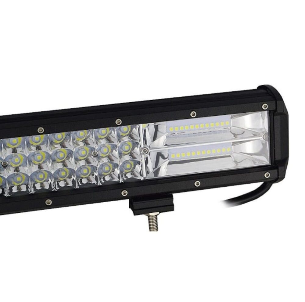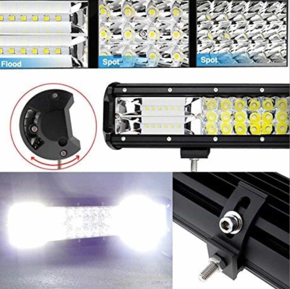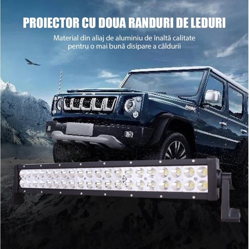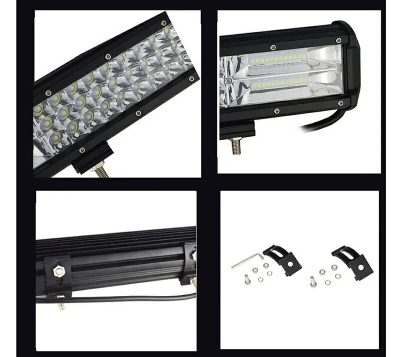 Lipsesc suportii si elementele de prindere. Proiectorul LED auto pentru Off Road de la Techstar® PNG3 poate fi utilizat intr-o gama larga: Cu excepția iluminatului vehiculelor de teren, acesta poate fi aplicat și la manipularea materialelor, iluminatul mașinilor agricole, iluminatul cu LED-uri marin și luminile LED de urgență și salvare, cum ar fi: Vehicule off-road: UTV, șenilată de nisip, buggy, ATV, SUV, camion, tren, motocicletă, autobuz, rezervor etc. Vehicule de inginerie: excavator, tăvălug, buldozer, macara, stivuitor și camion minier etc. Vehicule specializate: mașină de pompieri, mașină de poliție, vehicul de salvare, vehicul de comunicații, vehicul de comandă militară etc. Altele: barcă, pescuit, lampă din curte, iaht, lampă stradală, etc. Durata de viata foarte mare, de peste 30.000 de ore de functionare. Carcasa din duraluminiu rezistenta la socuri. Protectie la apa si anticoroziune: IP 67 poate fi utilizat in ploaie si in medii grele de lucru (praf, noroi, etc). Specificatii produs: Putere: 324W Luminozitate: 6240 lumeni Tensiunea de lucru: 9-32V Clasa protectie: IP 67 Temperatura culoare lumina: 6000K Material: Aliaj Aluminiu Culoare corp: Negru Material lentila: Policarbonat Bracketi montaj: Duraluminiu Unghi lumina: Combo Beam (flood beam 60° pentru utilizare atat pentru distanta cat si pentru aproape) Lungime: cca 59 cm Durata de viata: > 30.000 ore Unghi lumina: Flood Beam 60° (pentru lucru/aproape) care are o putere foarte mare: 5280 lumeni,ceea ce inseamna de peste 10 ori mai mult decat faza scurta a unei masini obisnuite. Pachetul contine: Proiector led PNG3/324W, 59 cm cu 3 randuri de leduri Console de montare reglabile Set de suruburi.