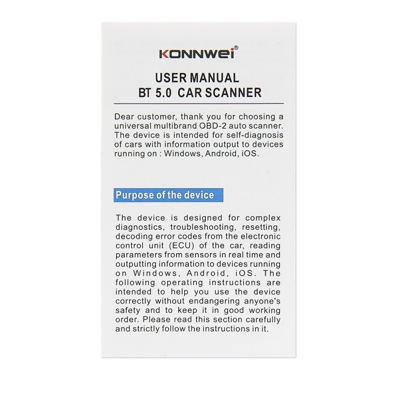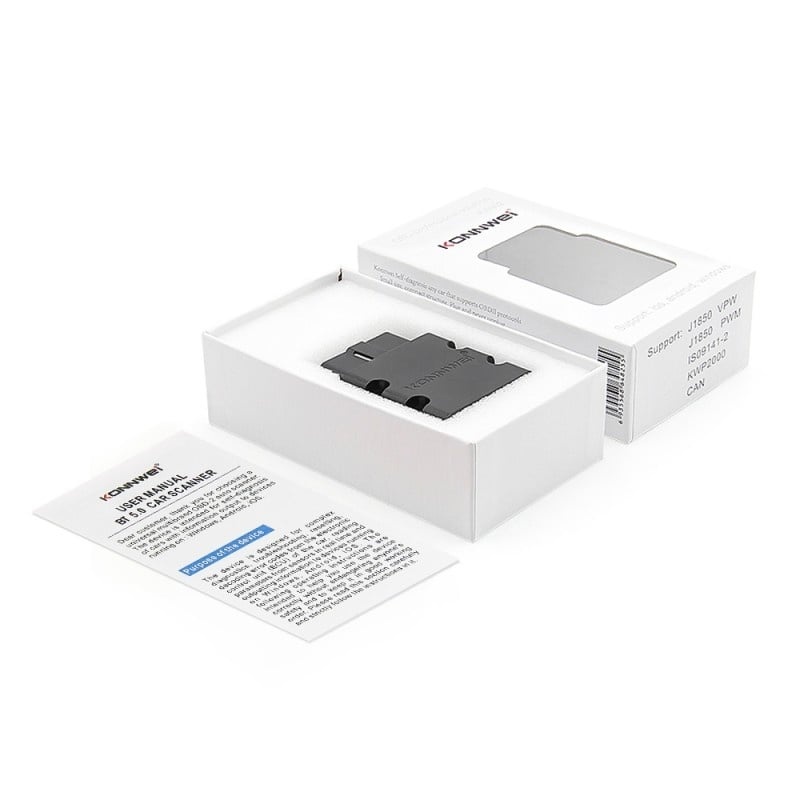 Instrumentul de scanare si diagnosticare auto, KONNWEI KW902 este un adaptor mic care se conecteaza la portul OBD al vehiculului prin Bluetooth. Se conectează la PC-ul cu Windows si dispozitivele cu Android prin procedurile de diagnosticare asociate. Făcând aceste operații simple, veți putea: Măsurați consumul de combustibil. Afișa performanța de funcționare în timp real a mașinii, cum ar fi impulsul, viteza vehiculului, presiunea uleiului, temperatura lichidului de răcire, sarcina motorului, presiunea galeriei de admisie, poziția clapetei de accelerație, valorile senzorilor de oxigen, temperatura de admisie a aerului și multe altele. Opriți MIL (motor de verificare a semnalului). Descărcați date pe medii externe într-o varietate de formate pentru imprimare ulterioară. Înregistrați diferiți parametri, afișați grafice în timp real și multe altele. efectuați o mașină completă de diagnosticare computerizată și chiar pentru a corecta defecțiuni minore fără a apela la stațiile de service. Funcții: 1. Citiți codurile de diagnosticare a erorilor, atât generice, cât și specifice producătorului, și afișați semnificația acestora (peste 3000 de definiții de coduri generice în baza de date). 2. Ștergeți codurile de defecțiune și dezactivați indicatorul luminos (luminos „Verificați motorul”) 3. Afișați datele curente ale senzorului, inclusiv: turația motorului, valoarea de încărcare calculată, temperatura lichidului de răcire, starea sistemului de alimentare cu combustibil, viteza vehiculului, reglarea combustibilului pe termen scurt, pe termen lung Compensarea combustibilului, Presiunea galeriei de admisie, Avansarea temporizării, Temperatura aerului admis, Debitul de aer, Poziția absolută a clapetei de accelerație, Tensiunile senzorului de oxigen/ajustările combustibilului asociate pe termen scurt, Starea sistemului de alimentare cu combustibil. Cum să setați conectarea Bluetooth: versiunea BLE 5.0 cu mod dublu: Pentru utilizatorii de Android: Ecran de pornire Accesați pagina de setări Selectați parola V-LINK. Implicit este „1234” Dispozitiv asociat Rulați aplicația Asociere Accesați aplicația Asociere Setare adaptor OBD II Alegeți tipul de conexiune > Bluetooth Alegeți dispozitivul Bluetooth > Aplicația V-LINK Output Torque Rulați complet aplicația Torque Conectat Conținut pachet: 1 x KW902 Scaner OBD Bluetooth 1 x Manual de utilizare în limba engleză