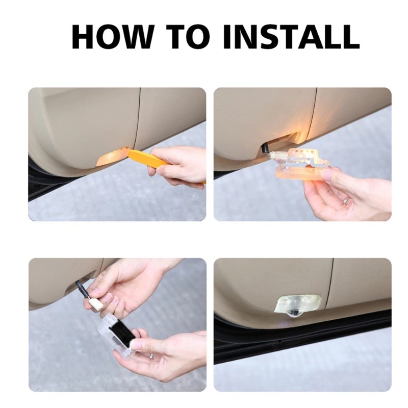 Specificatii Tehnice: Voltaj - 12v Putere: 5W Dimensiune: Lungime 102mm , Latime 32mm Montaj 1. De obicei acestea se monteaza in fata de usa, pe partea de jos. 2. Se cauta locul potrivit pentru a putea fi gaurita usa, astfel incat lumina sa fie perpendiculara pe sol 3. Odata pus in loc, produsul se va pozitiona pana se va ajunge la pozitia corecta 4. Se va conecta la instalatia electrica a masinii, in general acesta se conecteaza la butonul de contact din usa, iar acestea vor porni atunci cand usa se va deschide.