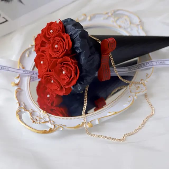 Suport cornet pentru flori , engros cu lănțișor 27cm negru