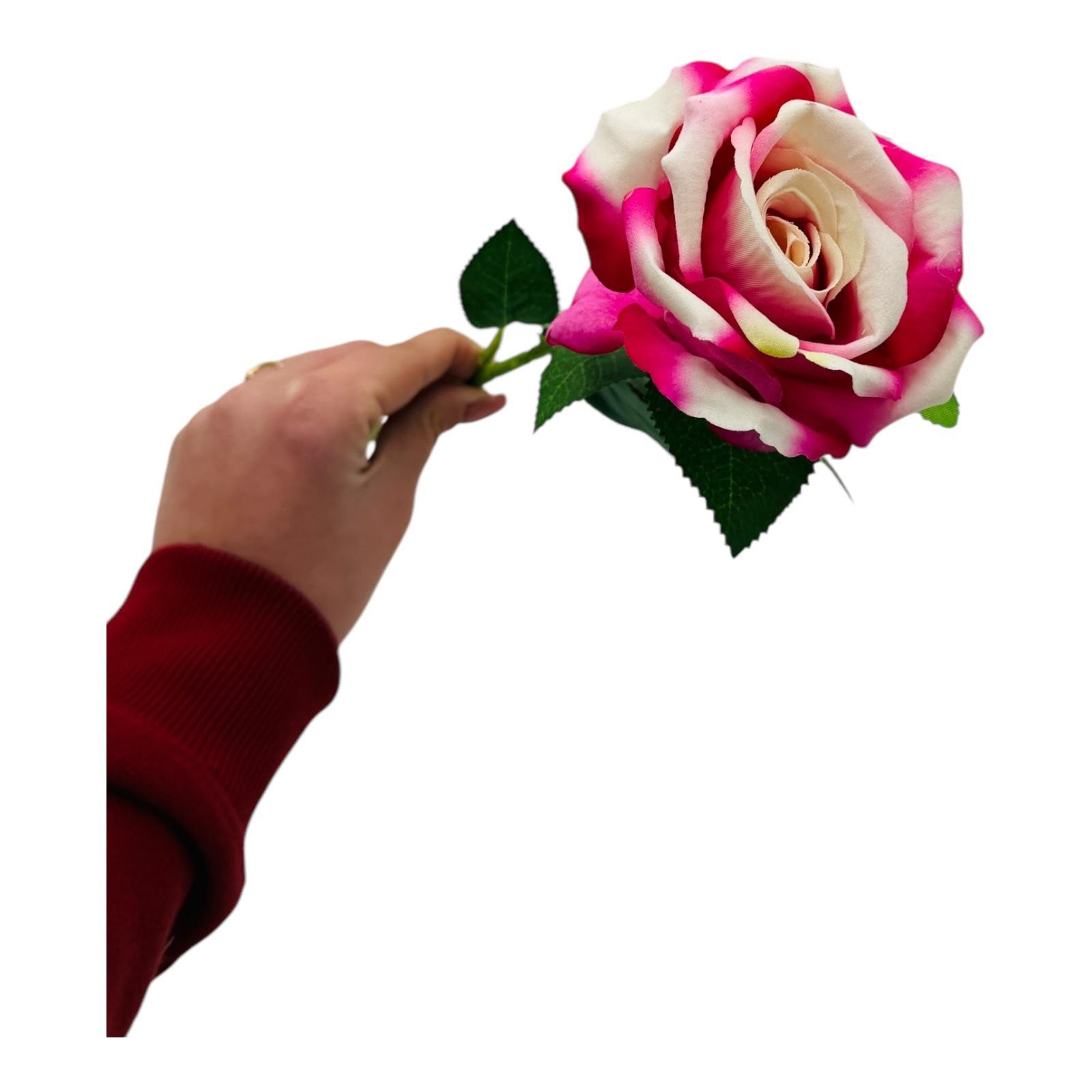 „Trandafir artificial elegant, perfect pentru a adăuga o notă de rafinament oricărui decor. Cu o înălțime de 51 cm, acest trandafir impresionează prin designul său realist, detalii fine și culori naturale, fiind confecționat din materiale de calitate superioară care asigură un aspect autentic și durabilitate. Ideal pentru decoruri interioare, evenimente speciale sau aranjamente florale rafinate, acest trandafir artificial este o alegere versatilă și sofisticată. Disponibil en-gros, este potrivit pentru florării, decoratori și organizatori de evenimente care doresc să creeze un impact vizual deosebit. Alege acest trandafir elegant pentru a completa orice spațiu cu stil și eleganță! ”