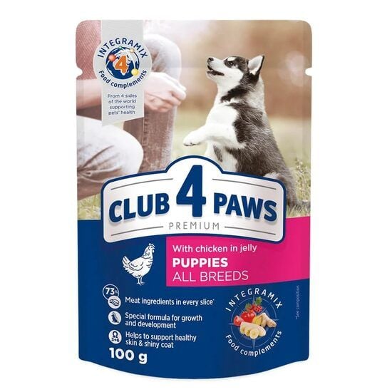 Hrana umeda completa Club 4 Paws Premium pentru catei, gaina, 100 g Engros