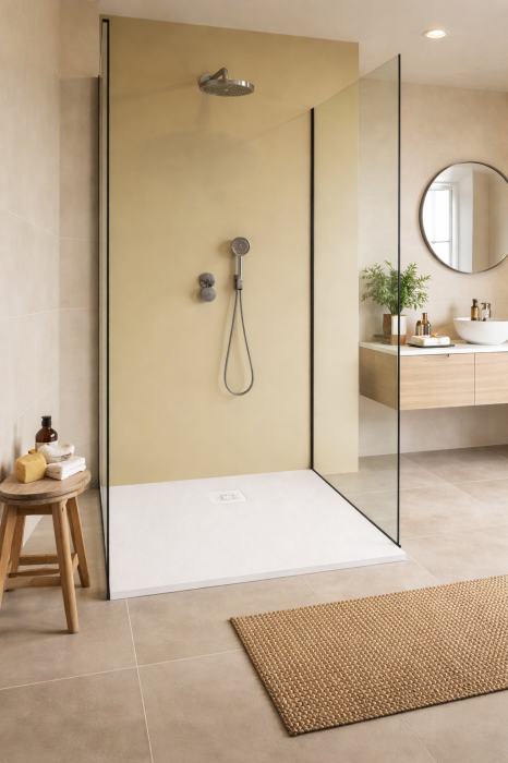 Cadita de dus din compozit, alba, 120x90 cm, Foglia Texture
