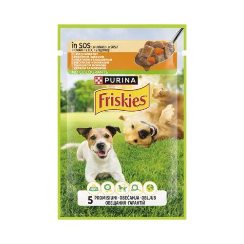 Hrană umedă pentru câini Friskies Adult cu pui și morcovi în sos 85 g Engros