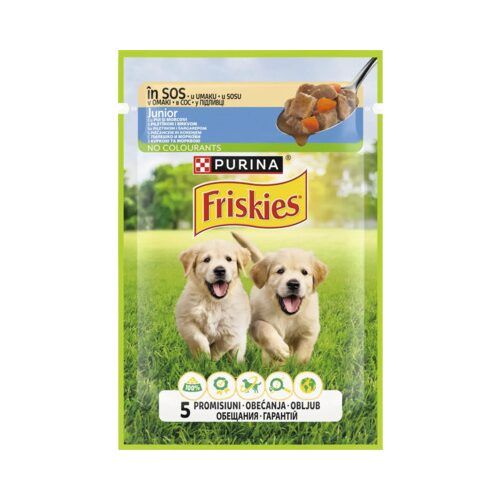 Hrană umedă pentru câini Friskies Junior cu pui și morcovi în sos 85 g Engros