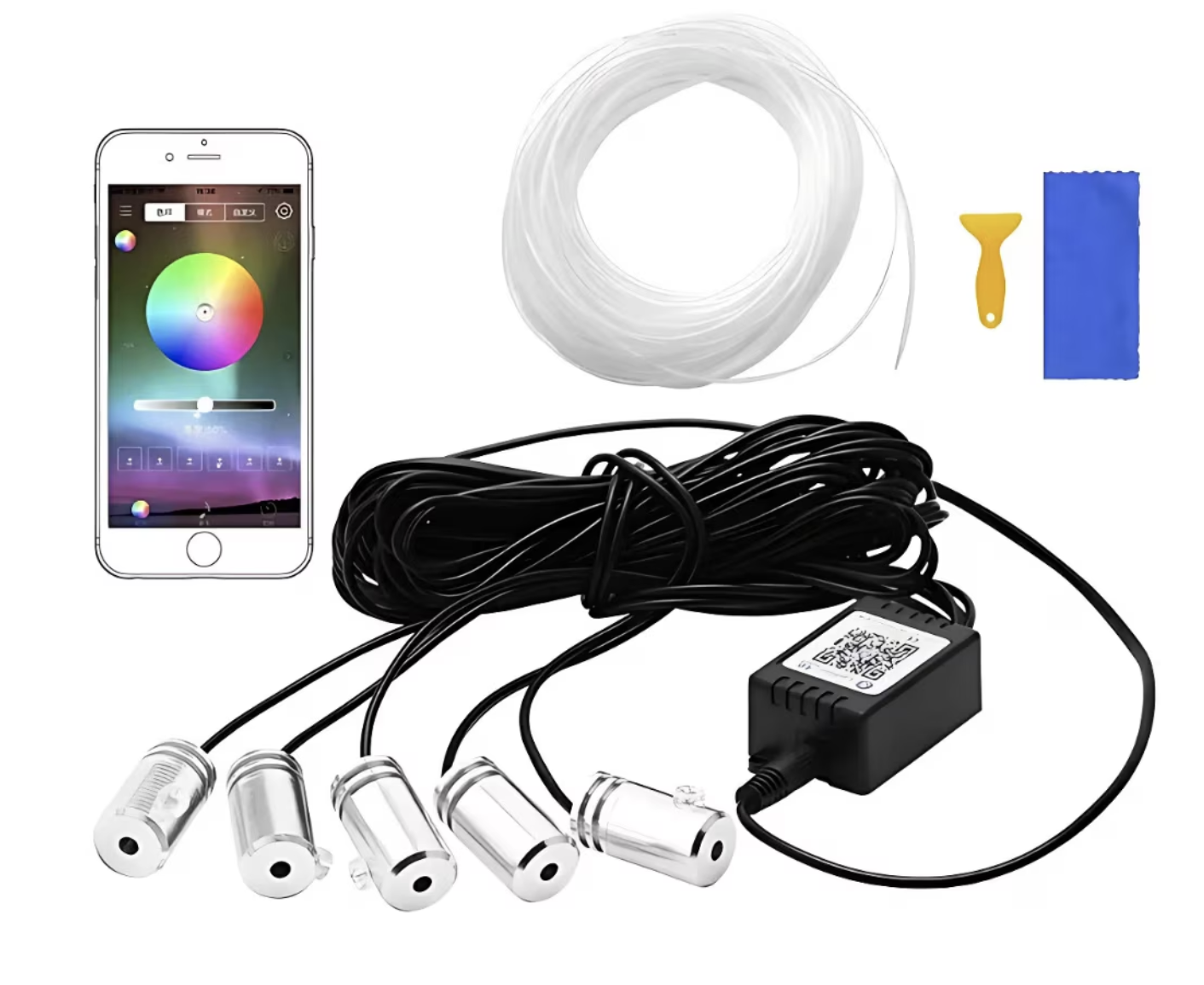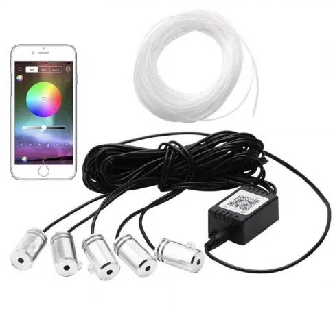 Kit Lumini ambientale auto 5 LED x 6 m neon RGB, aplicatie prin Bluetooth