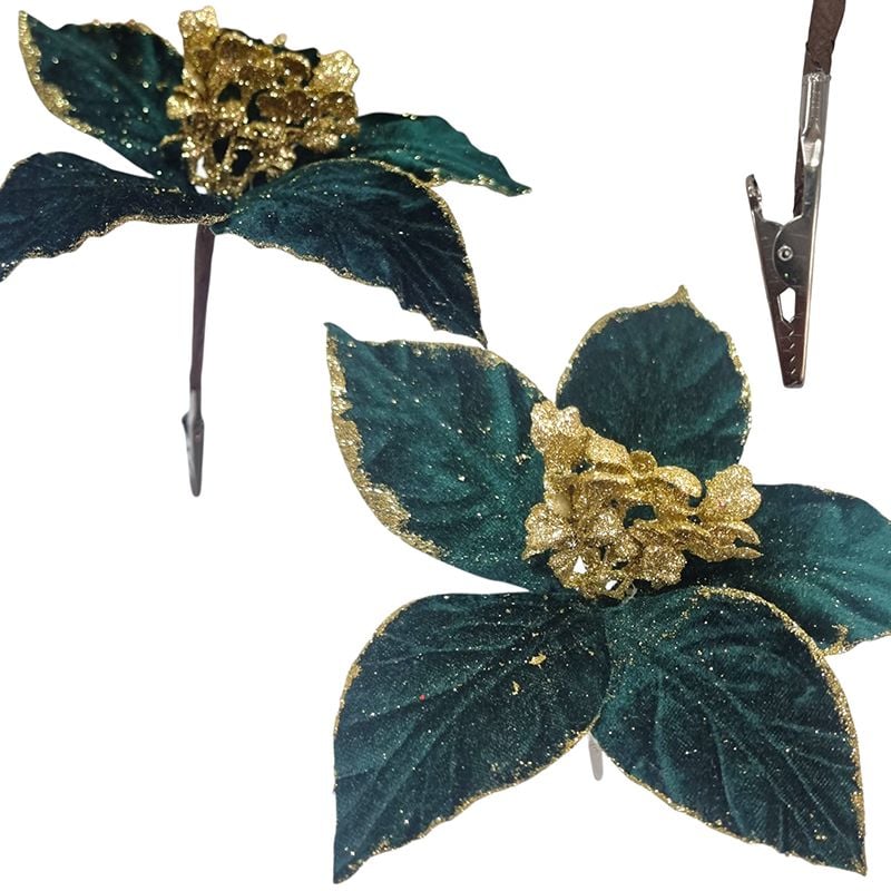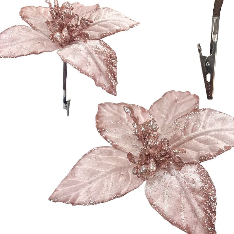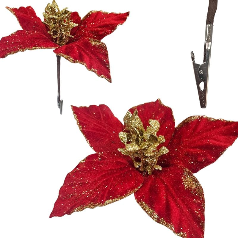 Craciunita cu clips si 5 petale material din catifea 20 cm diametru