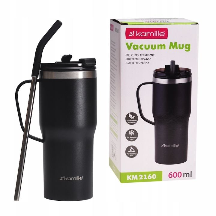 Cana Engros termos sportiva Kamille KM-2160, din inox, 600ml, negru
