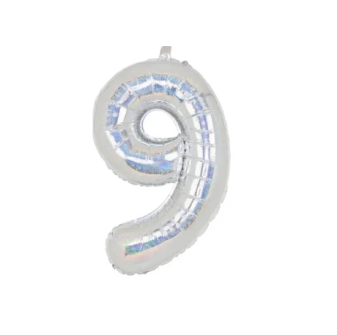 Baloane folie cifra 9, 100 cm argintiu holografic, Engros