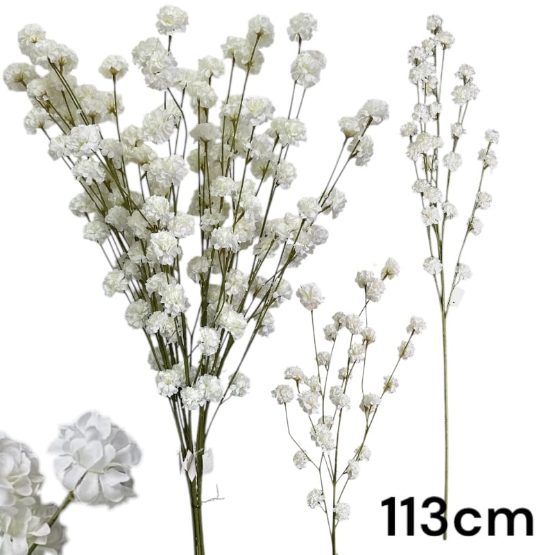 Ramură artificială cu flori albe rotunde, 113 cm, 5 ramuri – en-gros