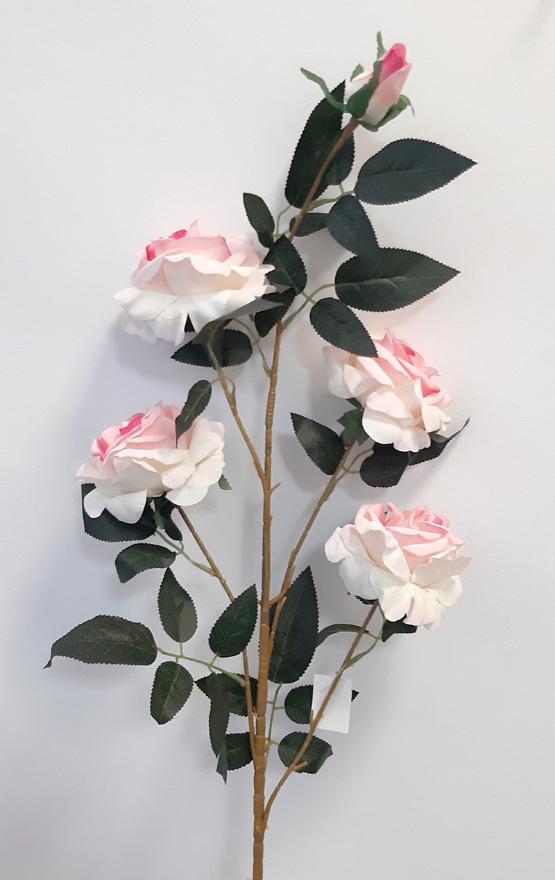 Trandafiri de catifea de pus in vaza,5 capete ,alb cu roz,100 cm lungime