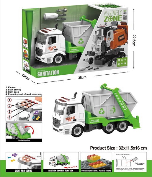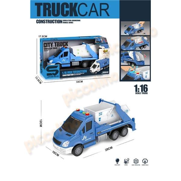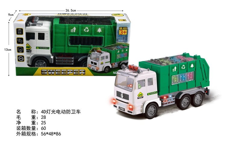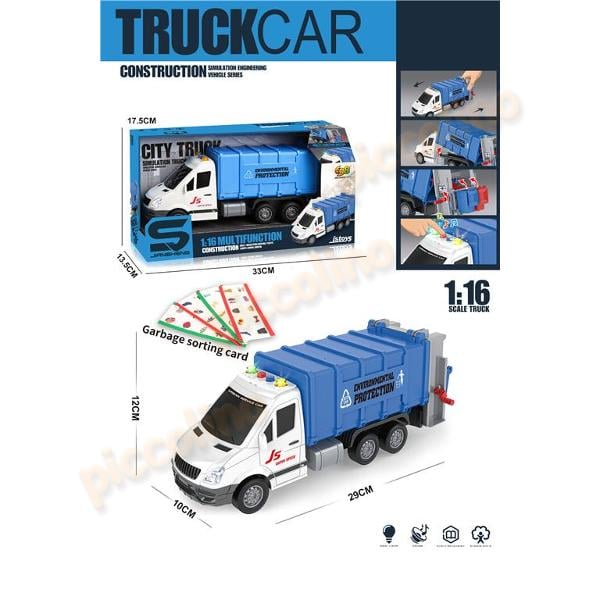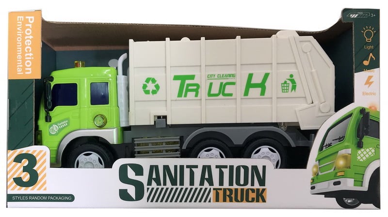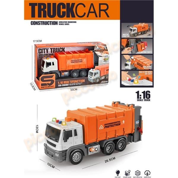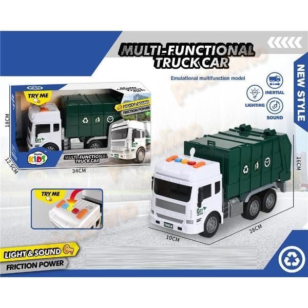 Masina de gunoi, engros, cu lumini si sunete, miscare prin frictiune, 28,7x14,6x9,7 cm