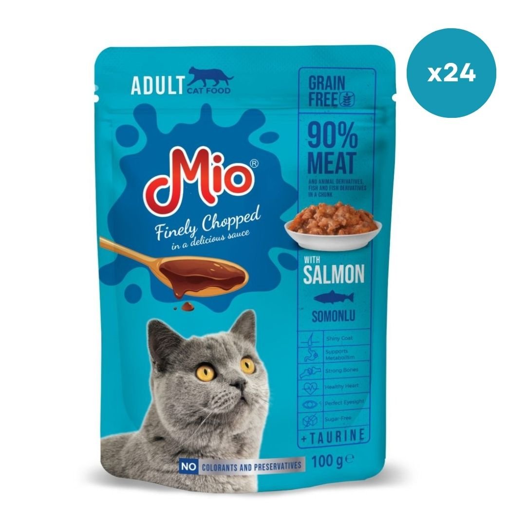 Plic pisica Mio Cat cu Somon, 100 g, Mancare Umedă En-gros Premium pentru Pisici Adulte (Cutie 24 Plicuri)