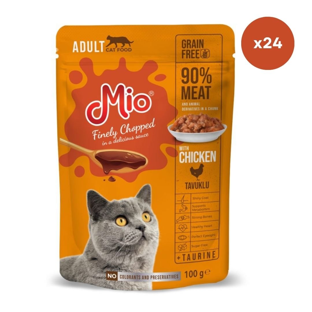 Plic pisica Mio Cat cu Carne de Pui, 100 g, Mancare Umedă En-gros Premium pentru Pisici Adulte (Cutie 24 Plicuri)