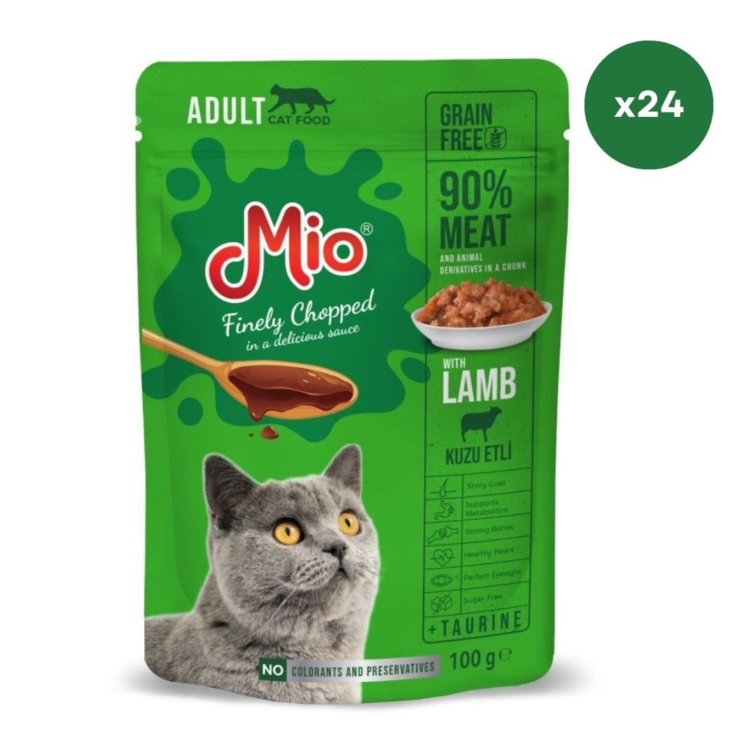 Plic pisica Mio Cat cu carne de Miel, 100 g, Mancare Umedă En-gros Premium pentru Pisici Adulte (Cutie 24 Plicuri)