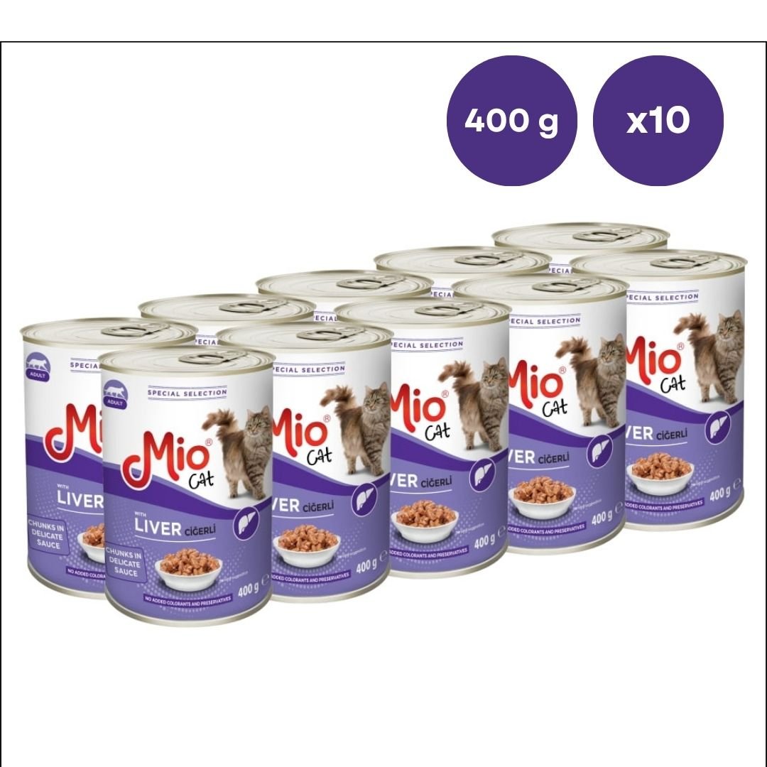 Conserva pisica Mio Cat cu Ficat, 400 g, Hrana Umedă En-gros Premium pentru Pisici Adulte (Set 10 Conserve)