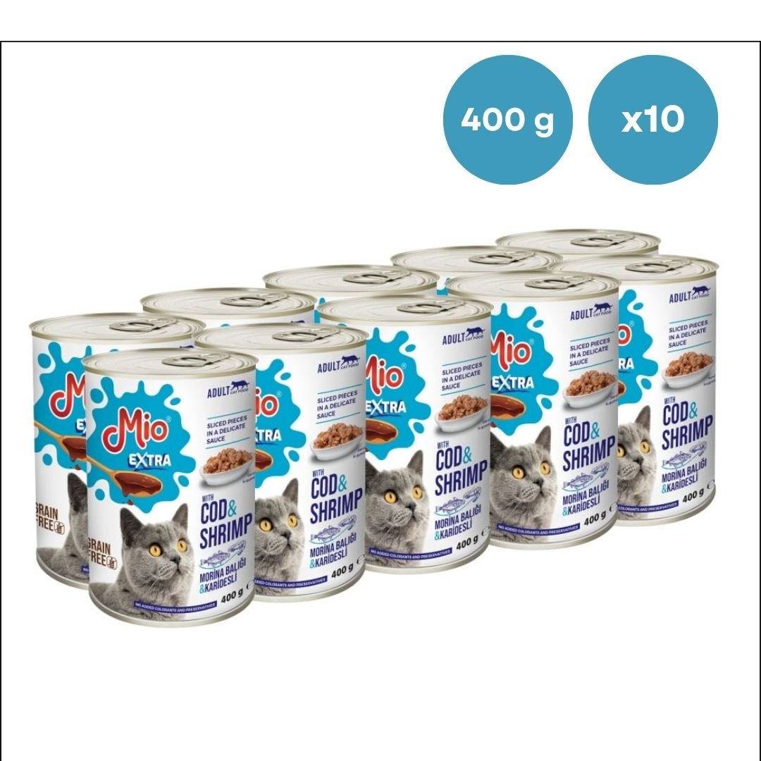 Conserva pisica Mio Extra Cat cu Cod si Creveti 400 g, Hrana Umedă En-gros Super Premium pentru Pisici Adulte (Set 10 Conserve)