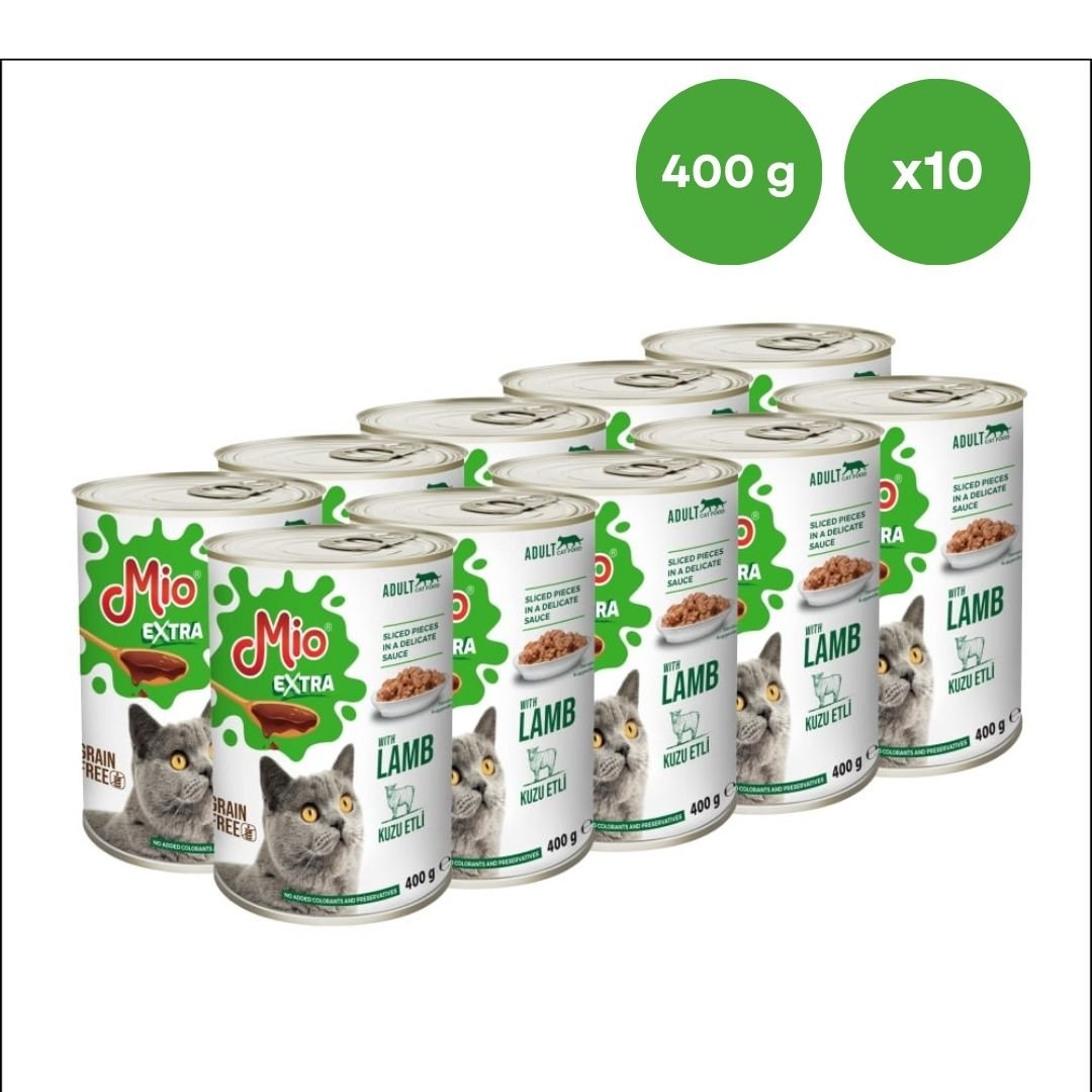Conserva pisica Mio Extra Cat cu Miel 400 g, Hrana Umedă En-gros Super Premium pentru Pisici Adulte (Set 10 Conserve)