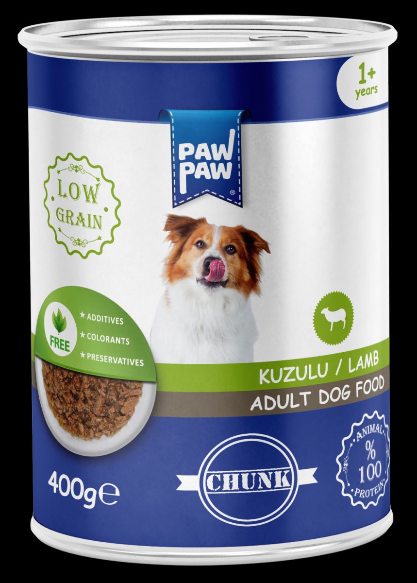Hrană umedă pentru câine adult, PAWPAW, bucăți de miel în sos, 400 g, conținut scăzut de cereale, digestie ușoară, hidratare optimă și gust delicios Engros